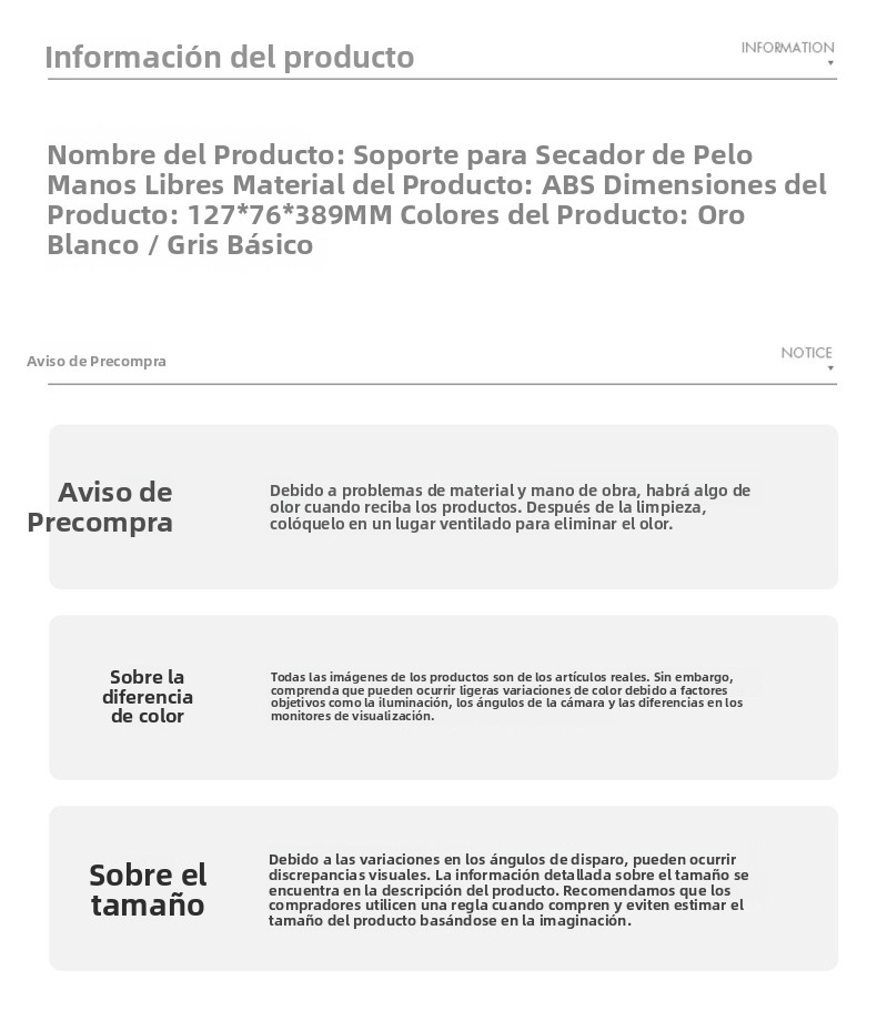 Soporte Para Secador De Pelo De Pared – Manos Libres Sin Perforaciones