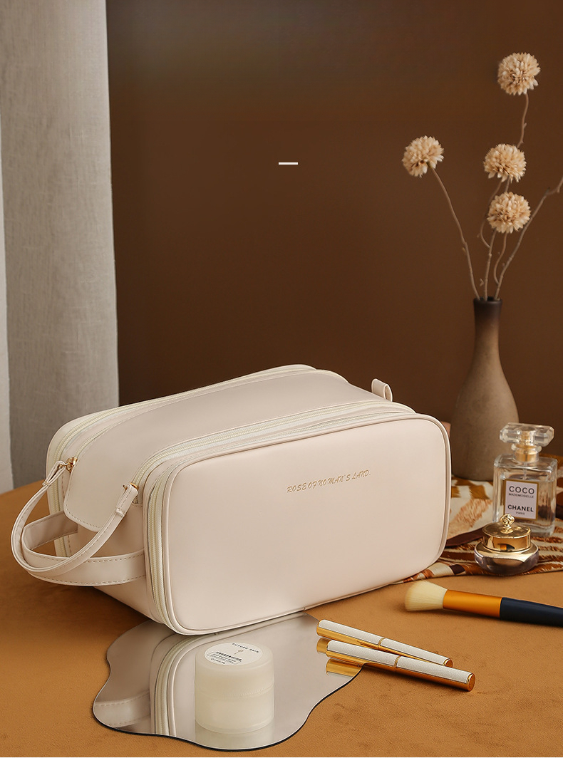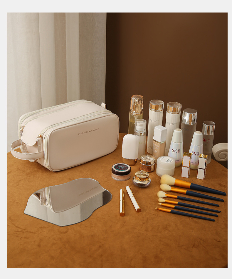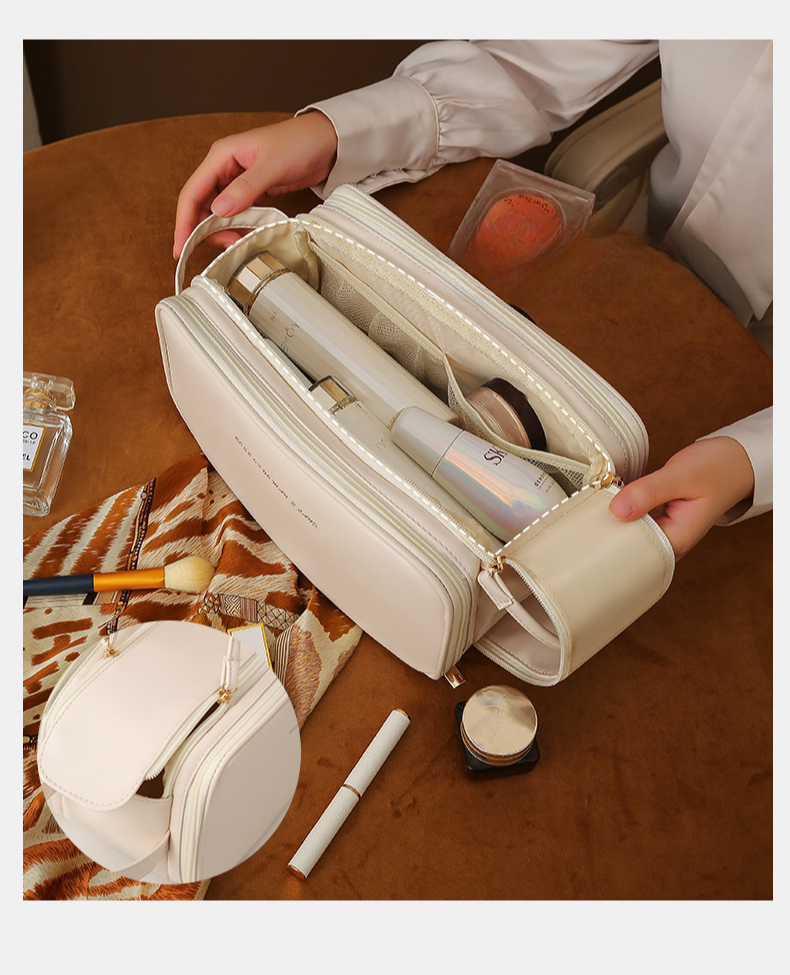 El neceser de maquillaje de PU es el compañero perfecto para tus viajes. Con un diseño elegante y gran capacidad, es ideal para organizar cosméticos y productos de cuidado personal. Fabricado con material resistente y fácil de limpiar, asegura la protección de tus productos en cualquier lugar.