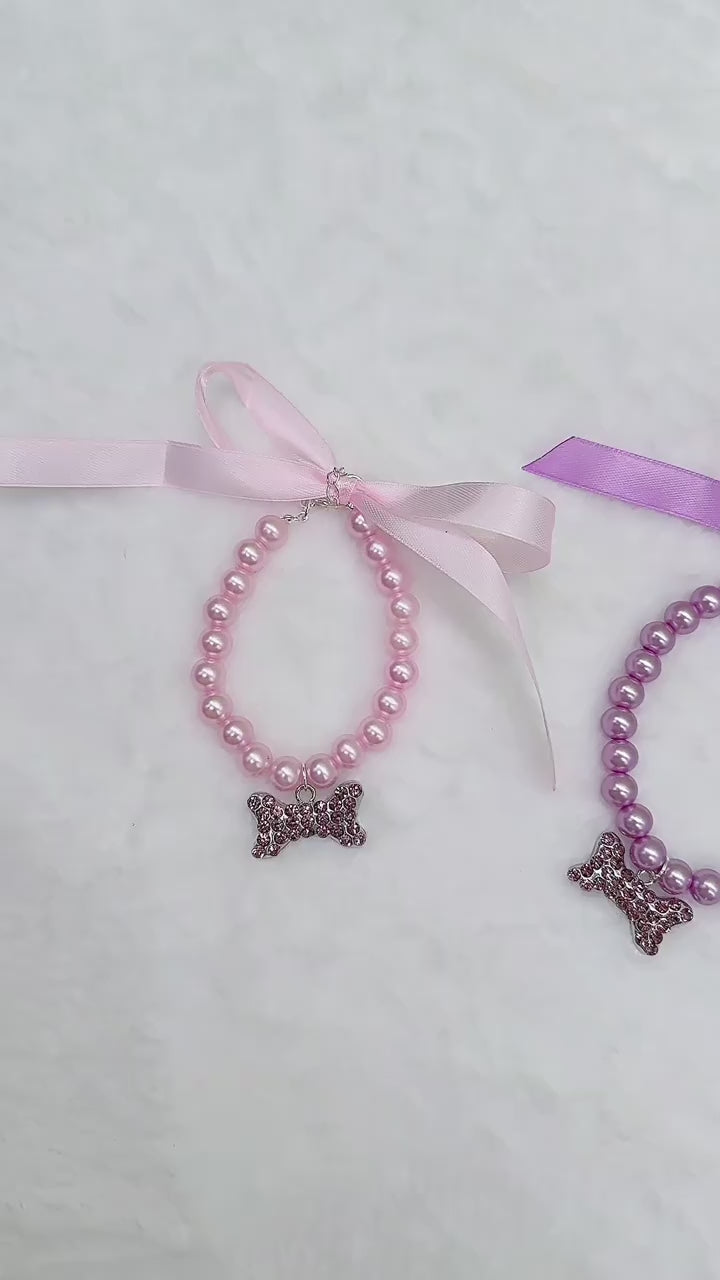 Collar para Mascotas Pequeñas con Perlas y Charm Decorativo con Cristales