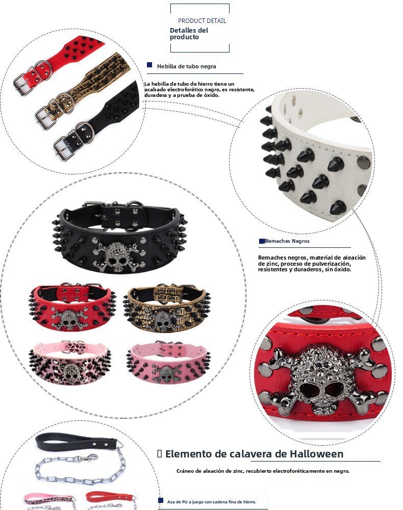 Collar Punk para Mascotas con Tachuelas y Calavera de PU