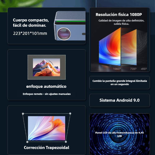 Proyector Portátil 4K Ultra HD con Android, WiFi y Enfoque Automático – Cine en Casa
