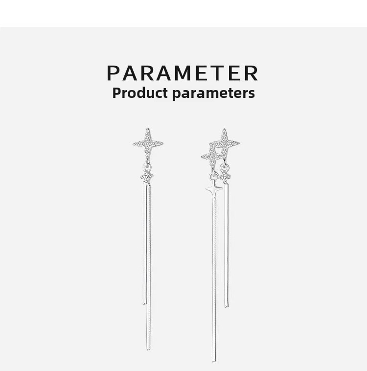 Asymmetrical Star Zirconia Earrings in S925 Silver: Elegant and Lightweight, Tassel Design