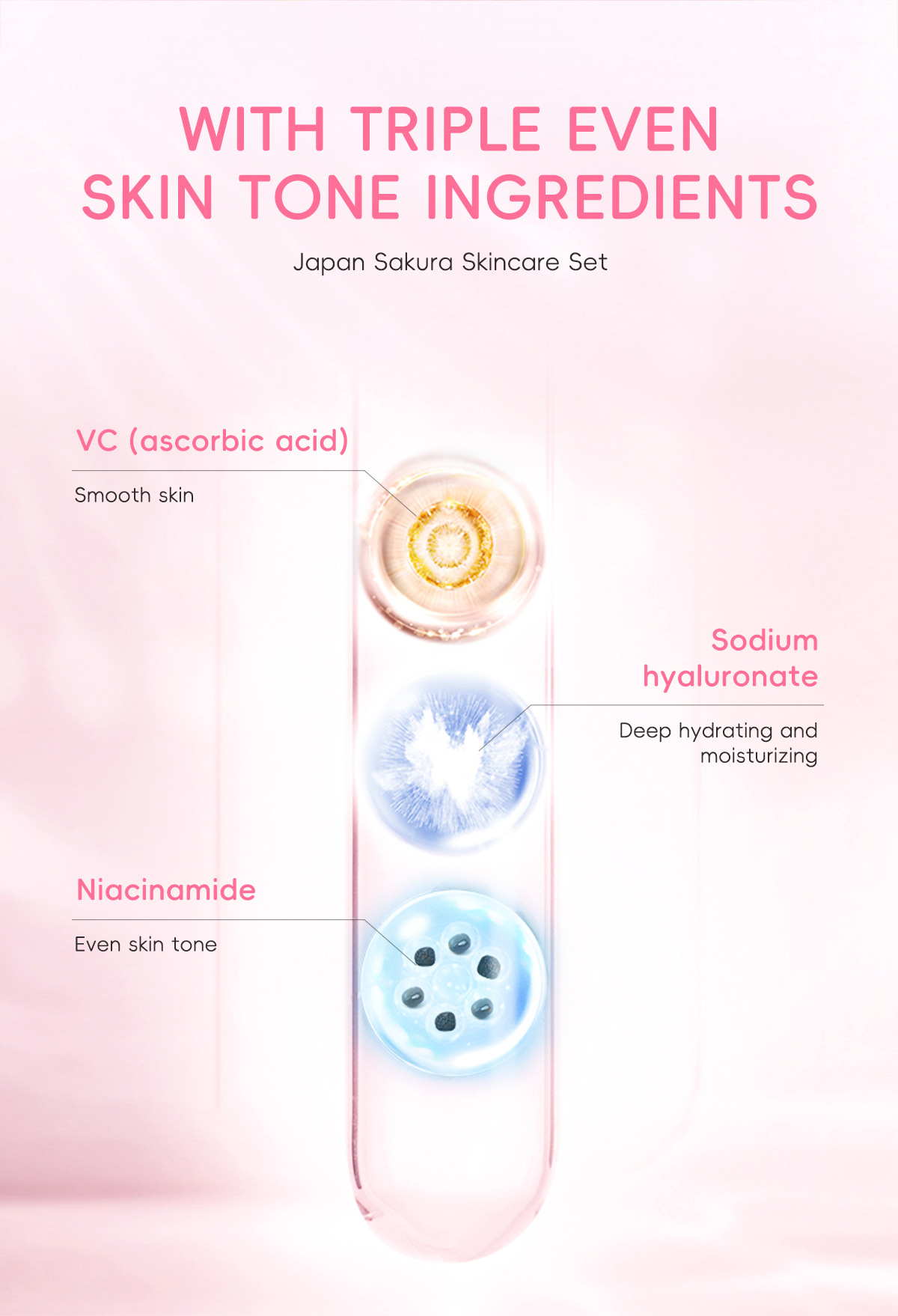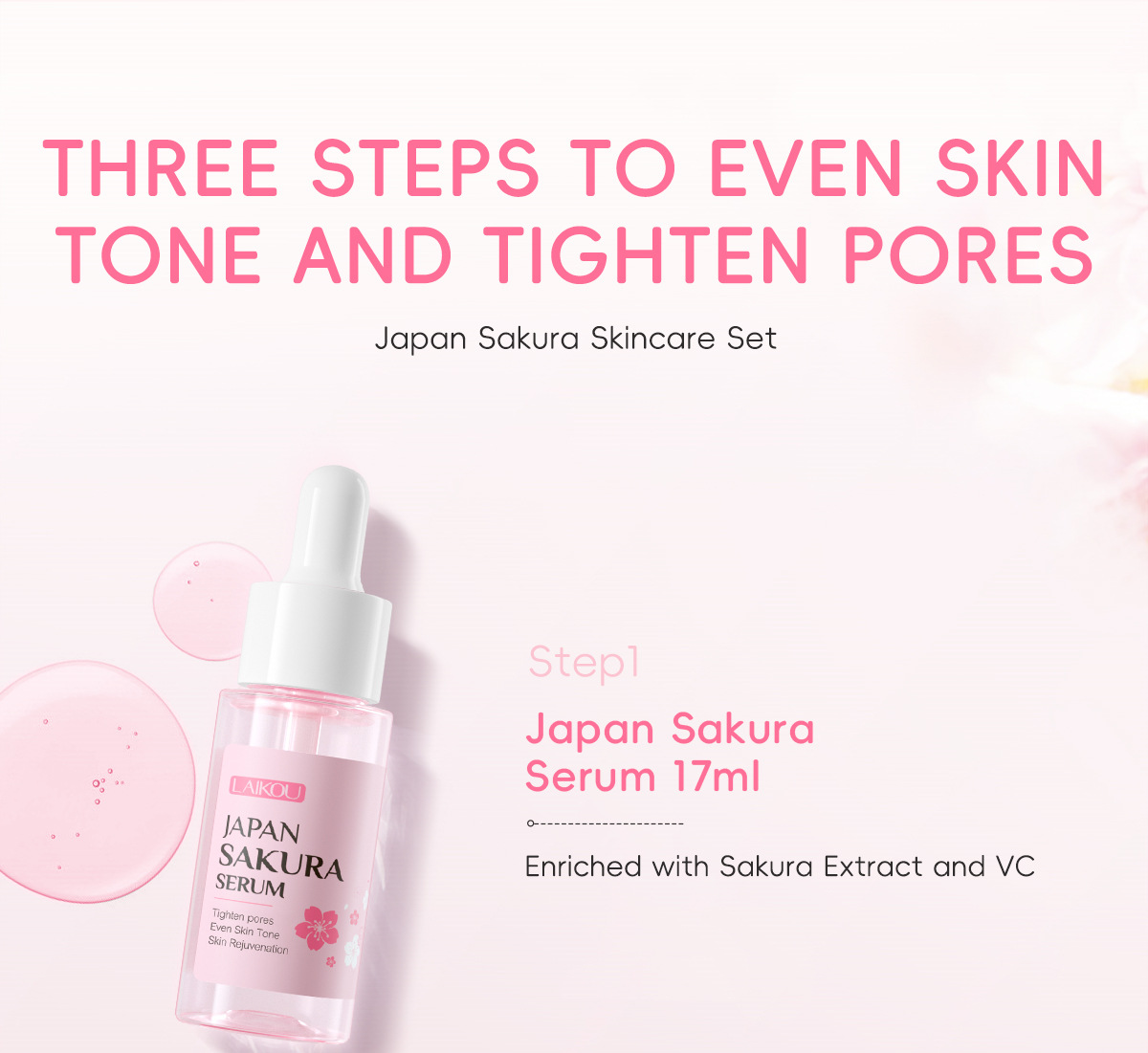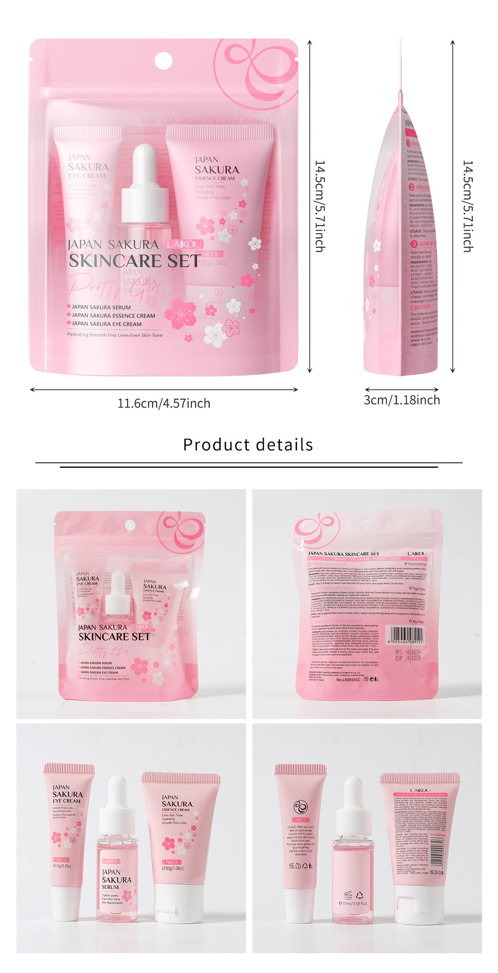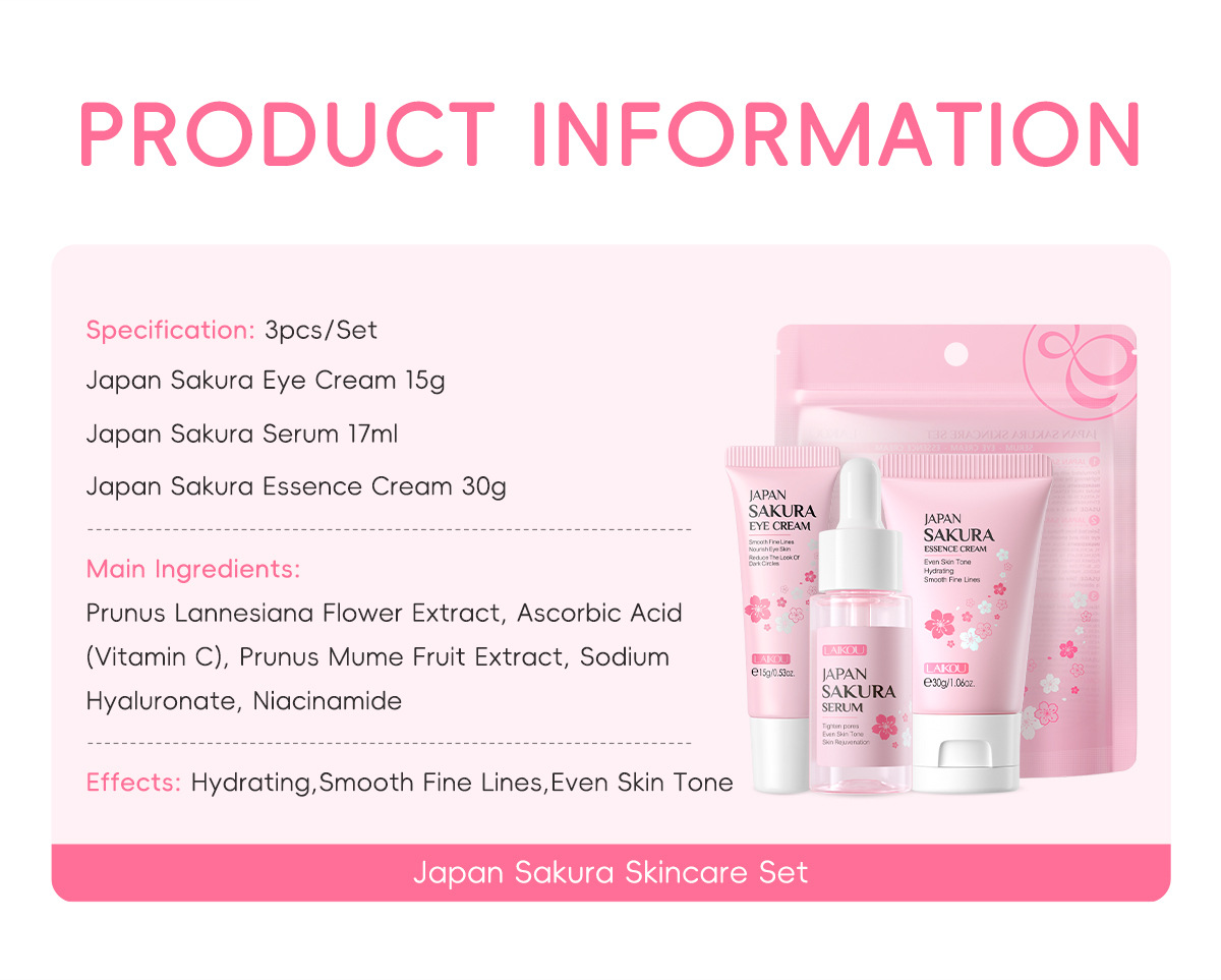 Japanese Sakura Skincare Set: 3 Pieces of Serum, Eye Cream, and Moisturizing Cream