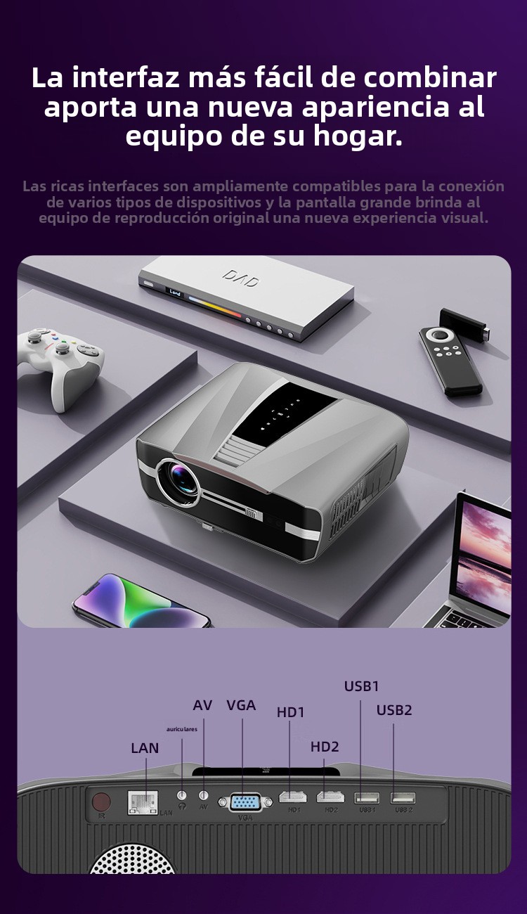 2025 D7 High-Definition Home Projector with Voice Control for Bedroom and Home Theater