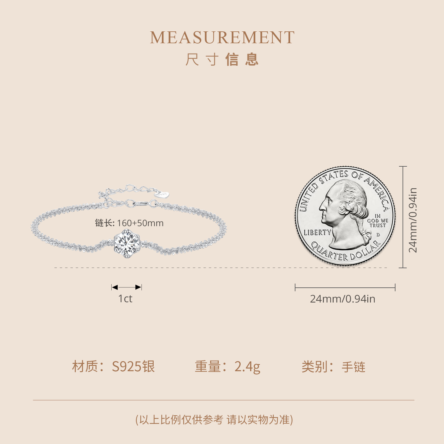 925 Sterling Silver Bracelet with 1 Carat Moissanite: Six-Prong Setting, Semi-Luxury Brilliant Birthday Gift