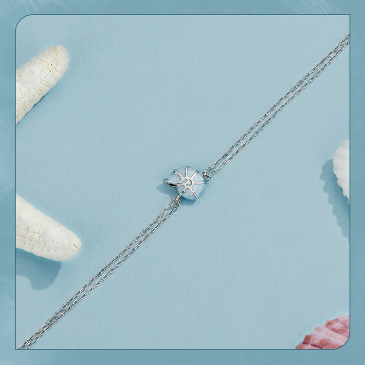 925 Sterling Silver Double Seashell Bracelet: Original Ocean Blue Design, Romantic Summer Jewelry for Women