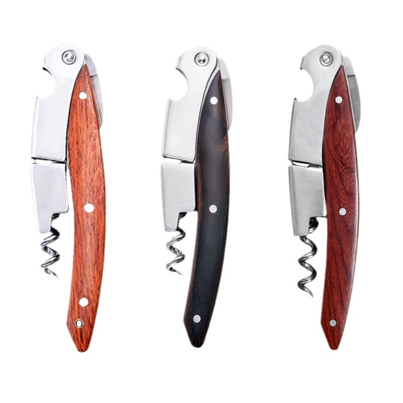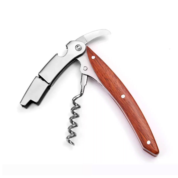 Multifunctional Wood and Stainless Steel Bottle Opener: Wine Opener, Kitchen Tool for Home