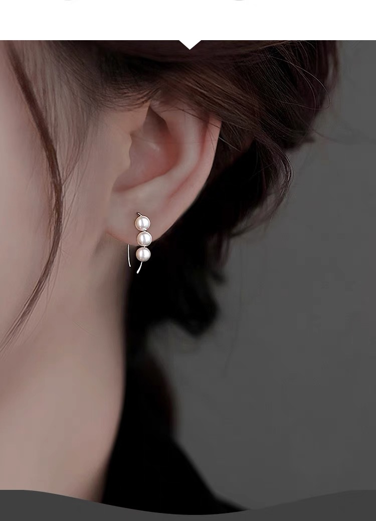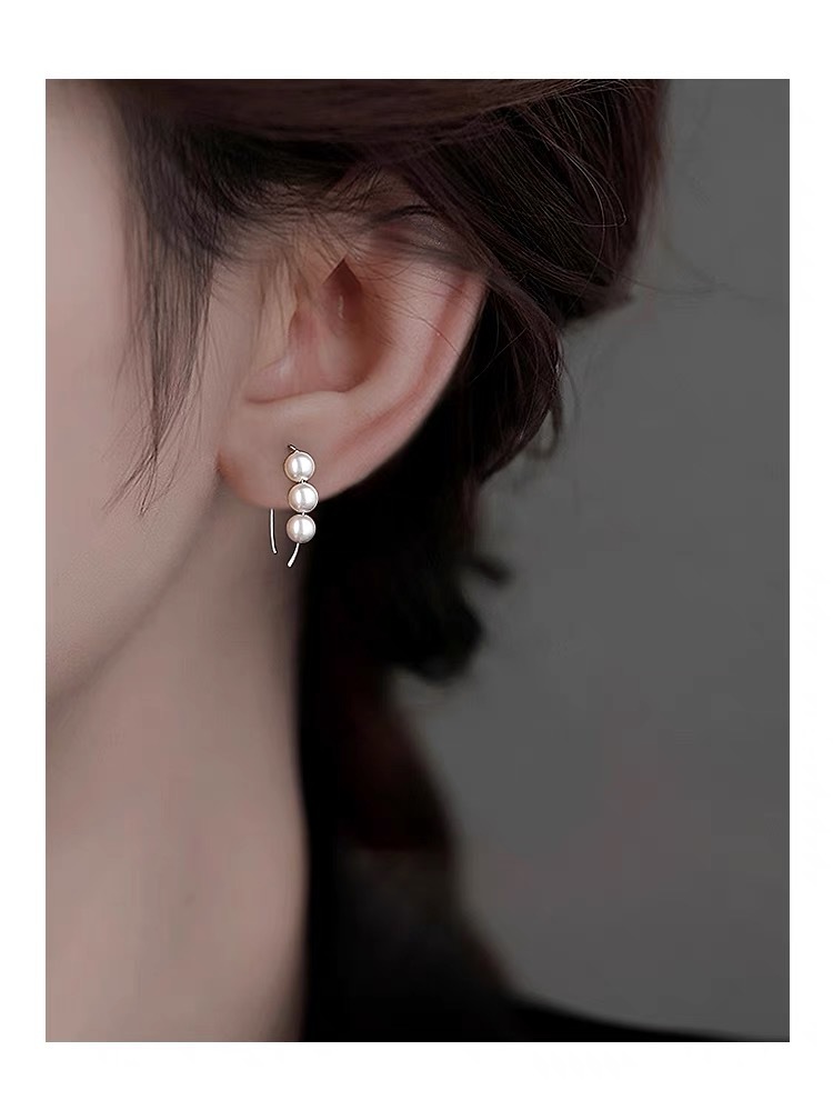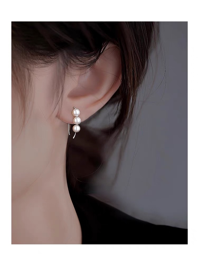 S999 Pure Silver Pearl Earrings: Elegant and Delicate, Three Pearls, Exclusive Design
