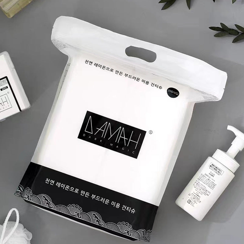 DAMAH Disposable Facial Towels from Korea: 'Black Magic' Cleansing Cloths, Dry and Wet 2 in 1 for Makeup Removal and Facial Care
