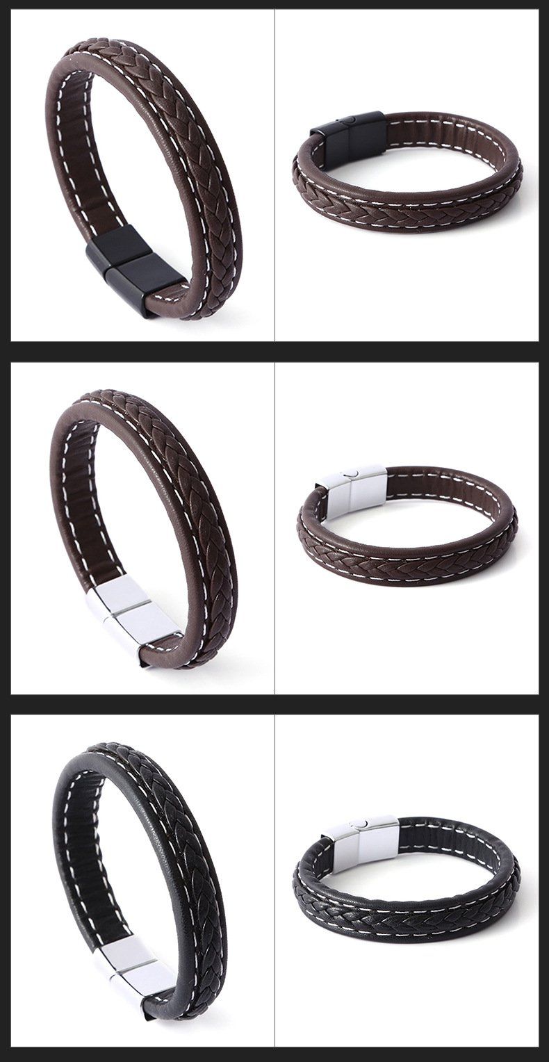 Material Genuine Braided Leather and Stainless Steel Closure Magnetic Stainless Steel Clasp