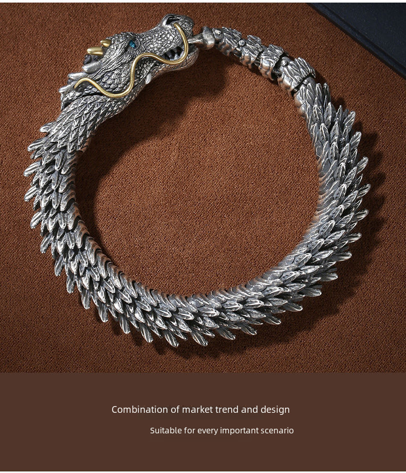 Vintage Thai Silver Hand Bracelet: Dragon Design, Ethnic Style, Individual Fashion, High-Quality Jewelry