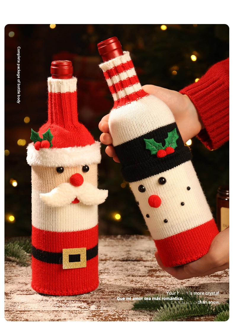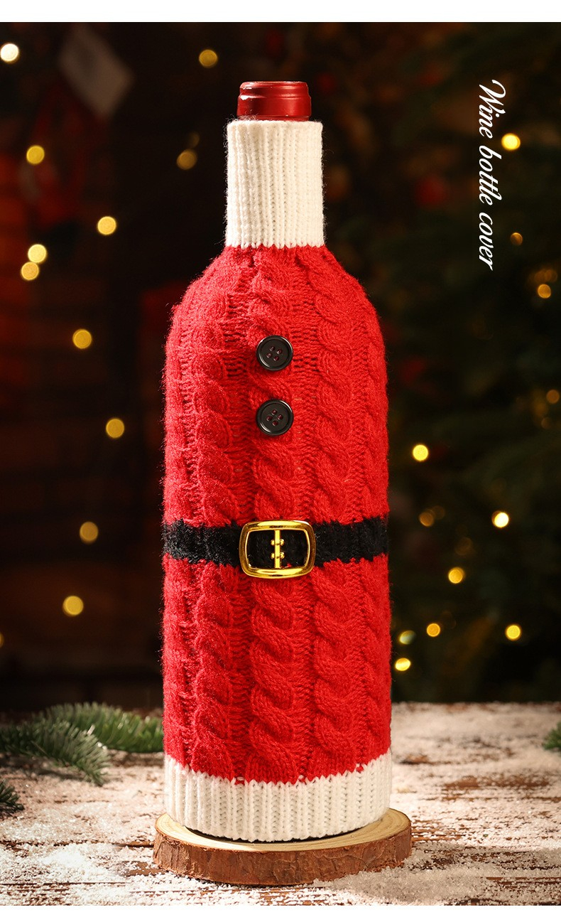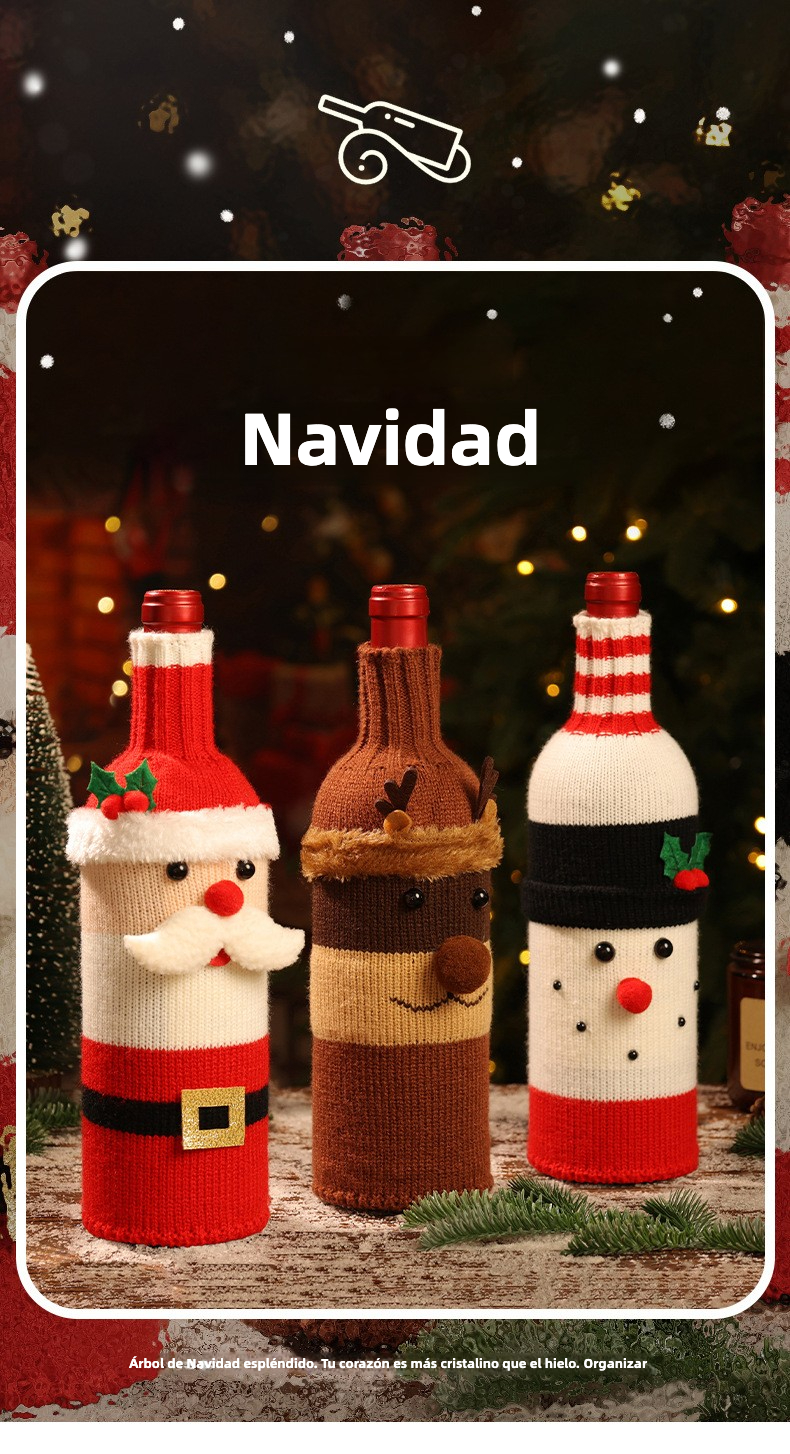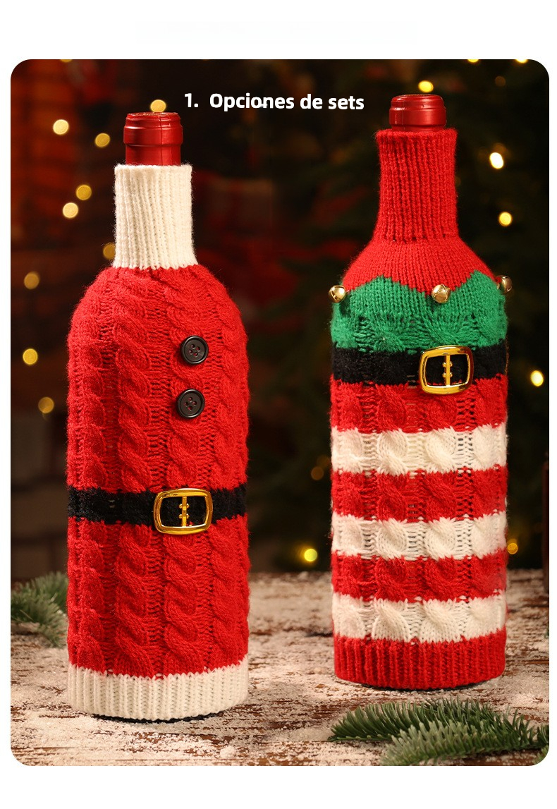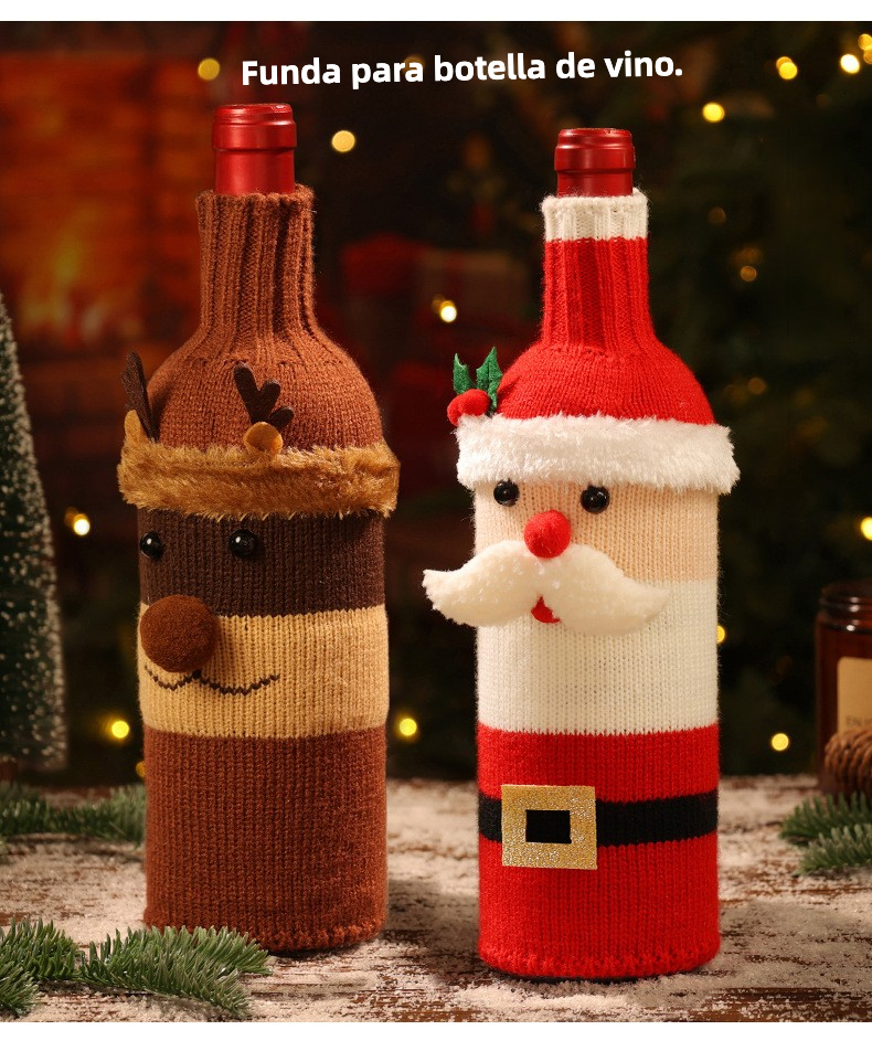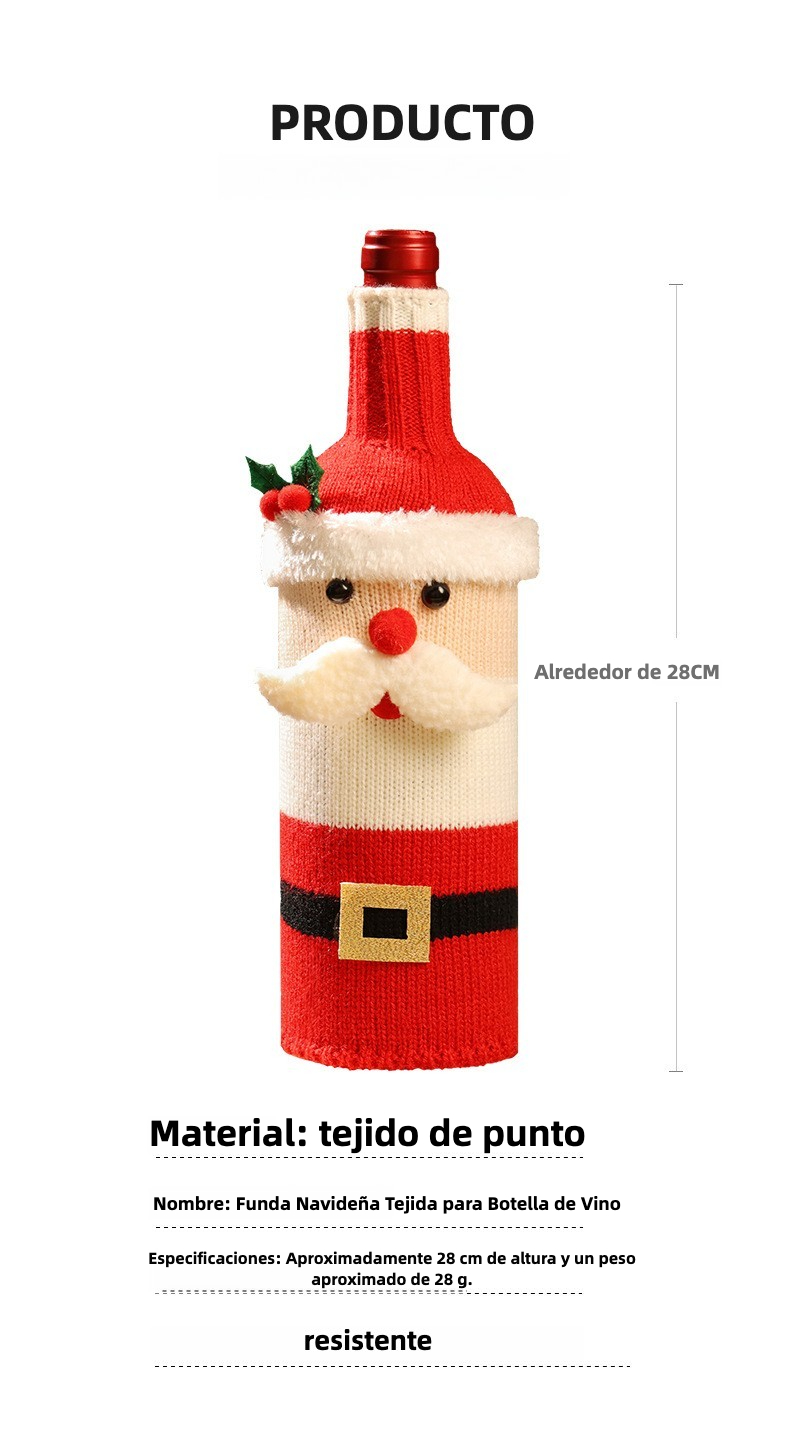 Funda Navideña para Botellas de Vino: Tejida en Lana con Diseños de Papá Noel, Reno y Más