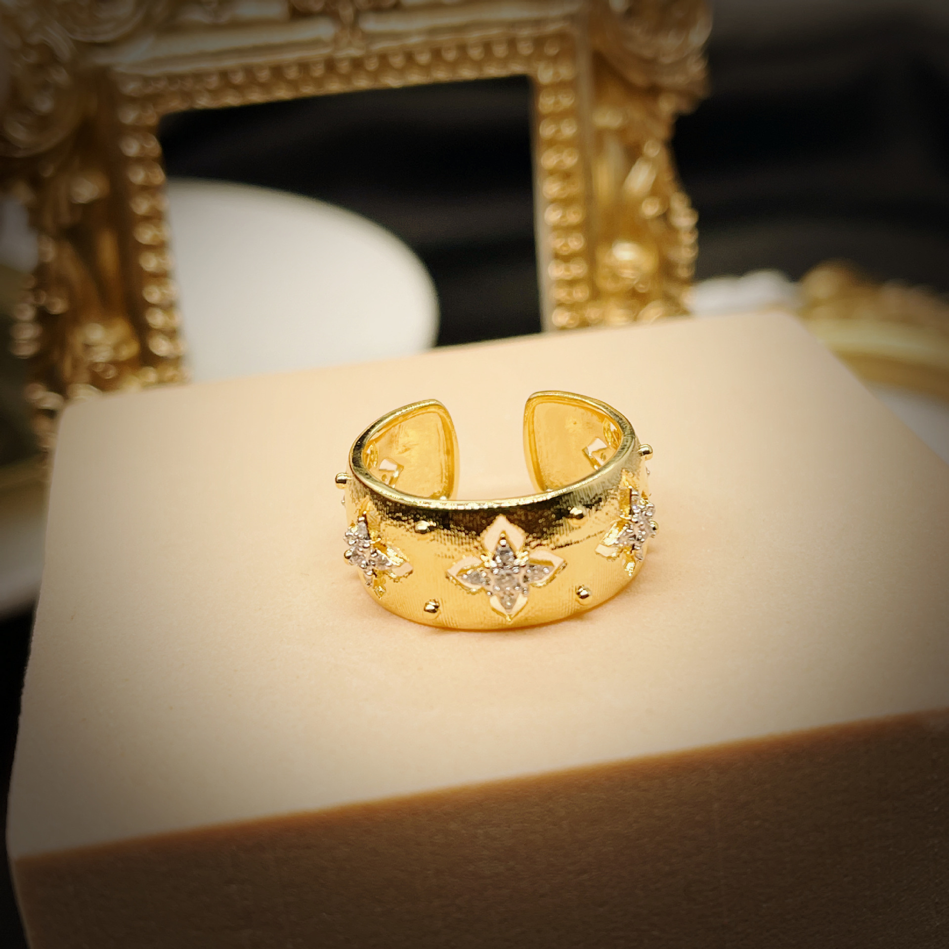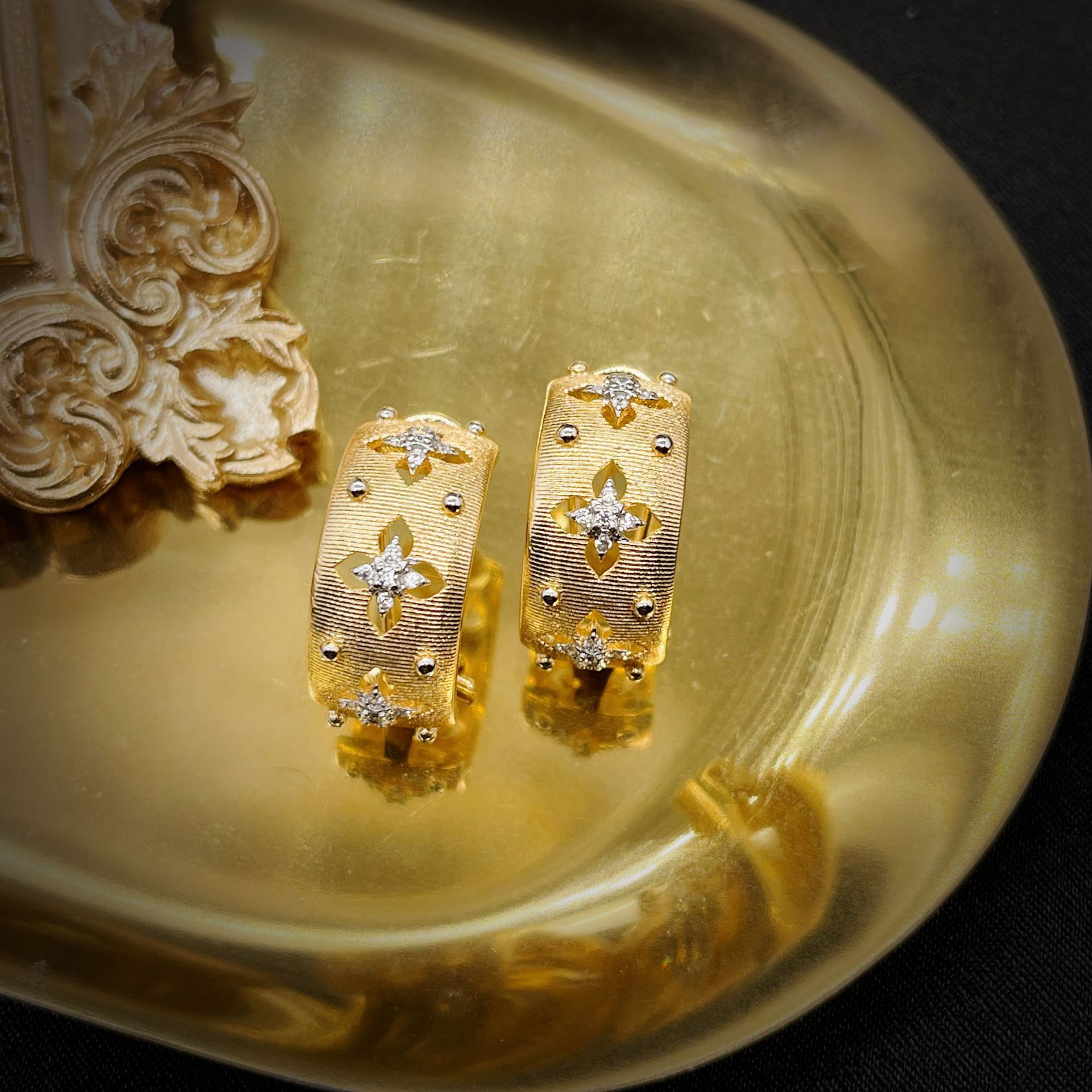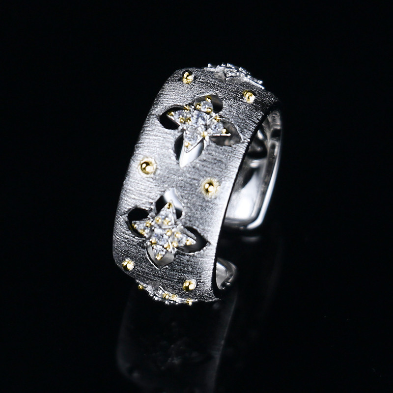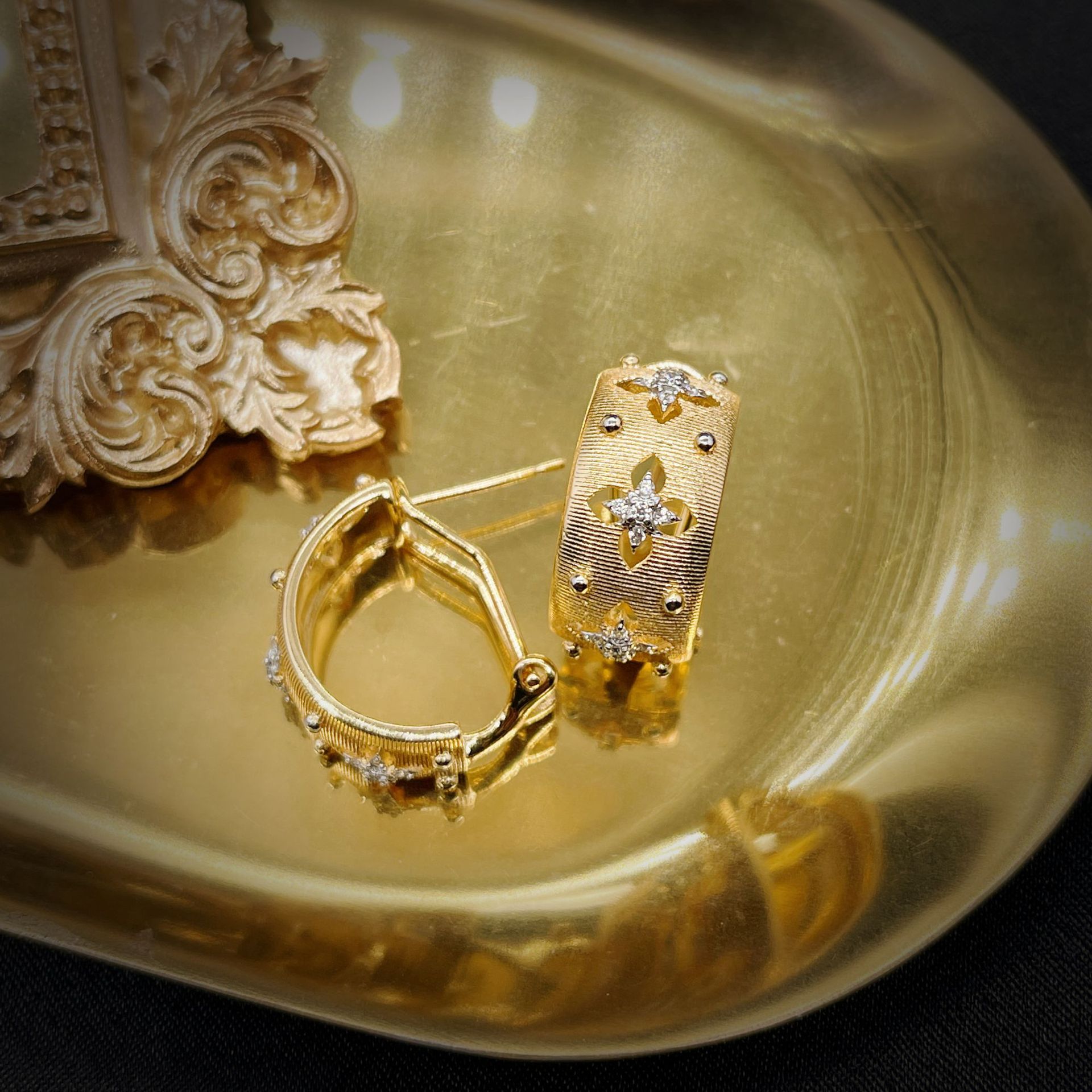 Anillo o Aretes con Flores Caladas – Estilo Rústico Bicolor en Oro y Plata