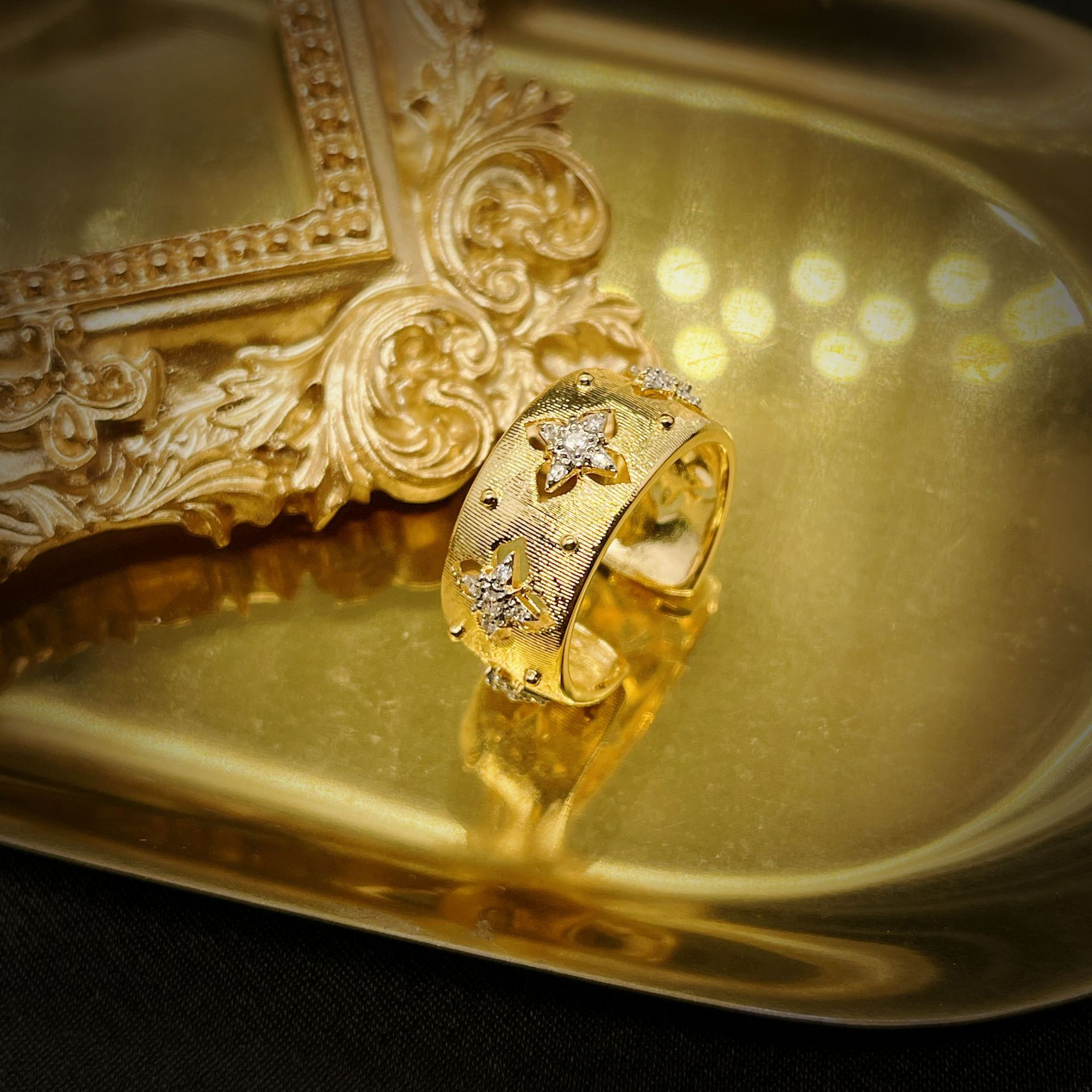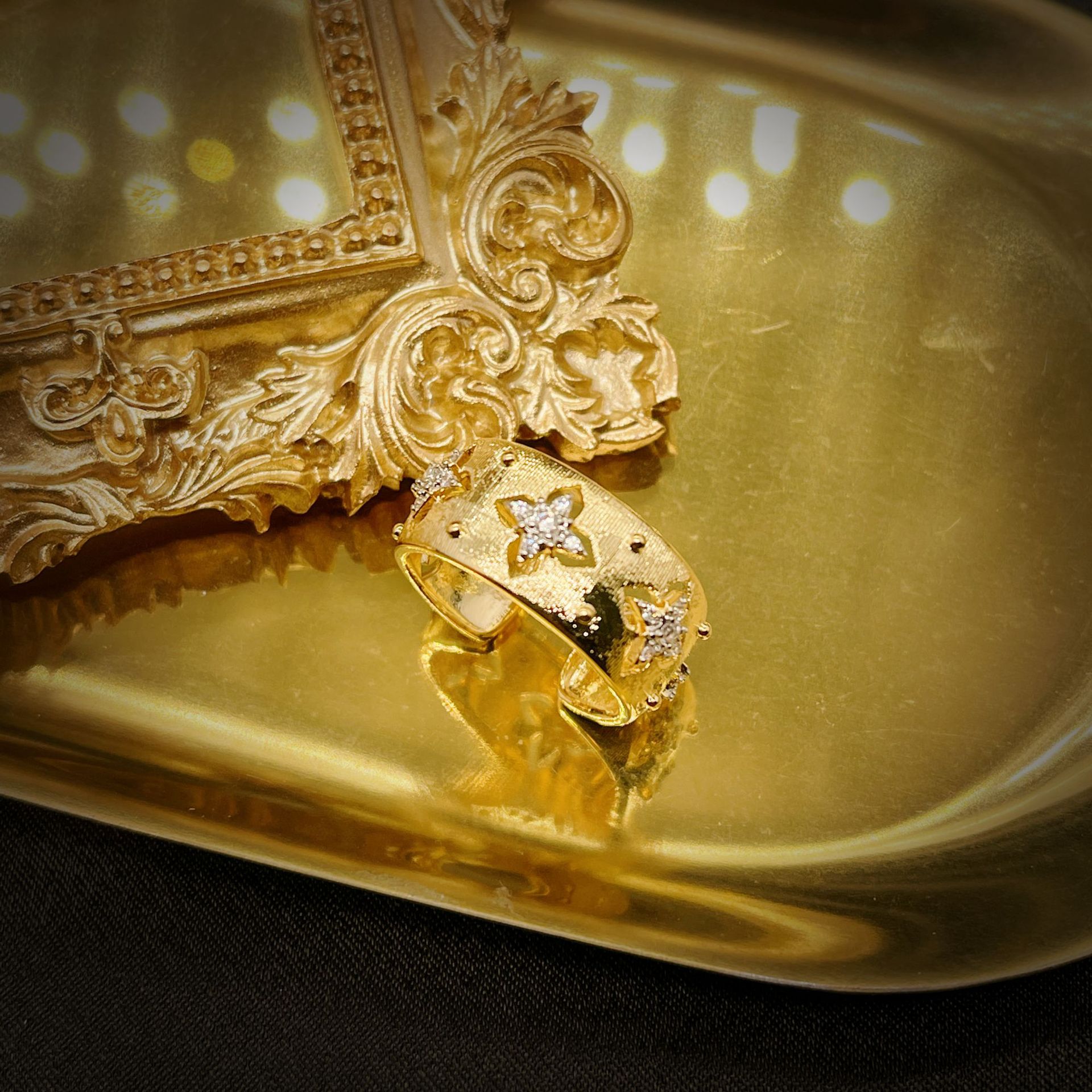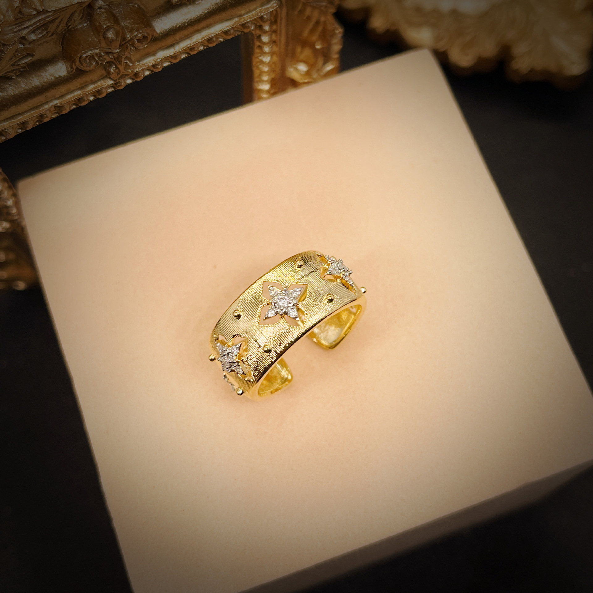 Anillo o Aretes con Flores Caladas – Estilo Rústico Bicolor en Oro y Plata