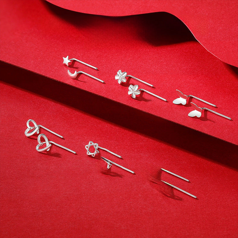 Aretes Botón de plata pura S999: Cierre de Gancho en Varios Modelos