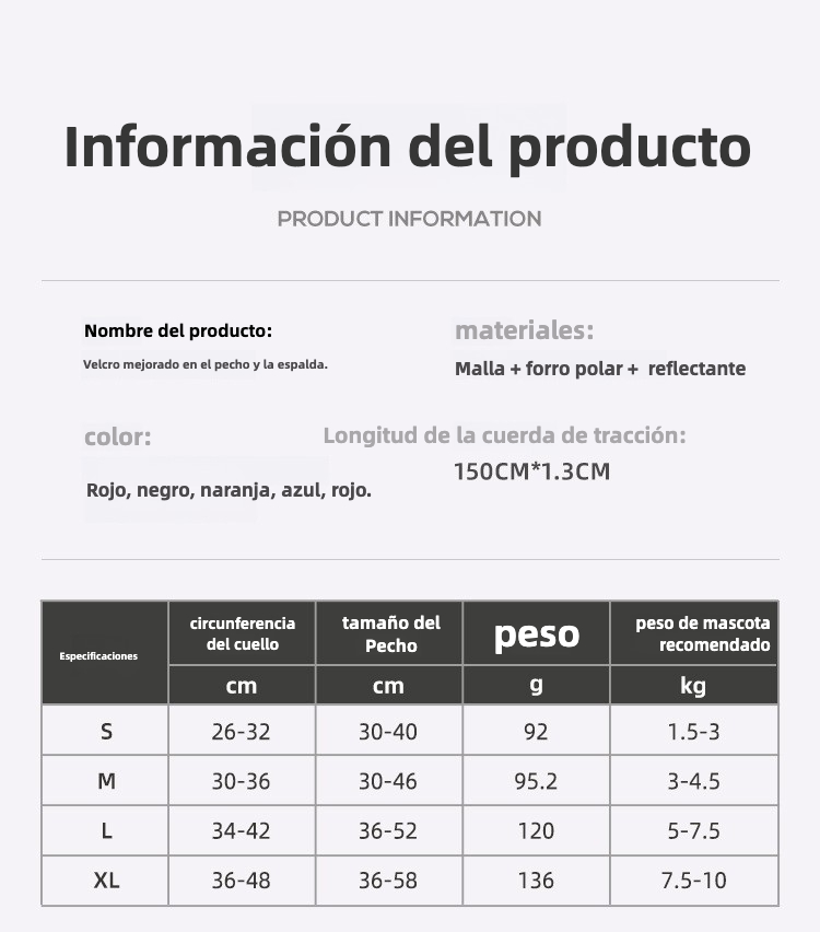 Arnés para Mascotas con Manija de Carga y Correa Incluida – Disponible en Varias Tallas