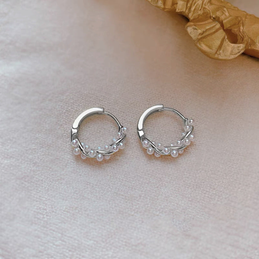 Aros Pequeños de Plata 925 con Perlas – Estilo Clásico con Cierre de Ballestilla