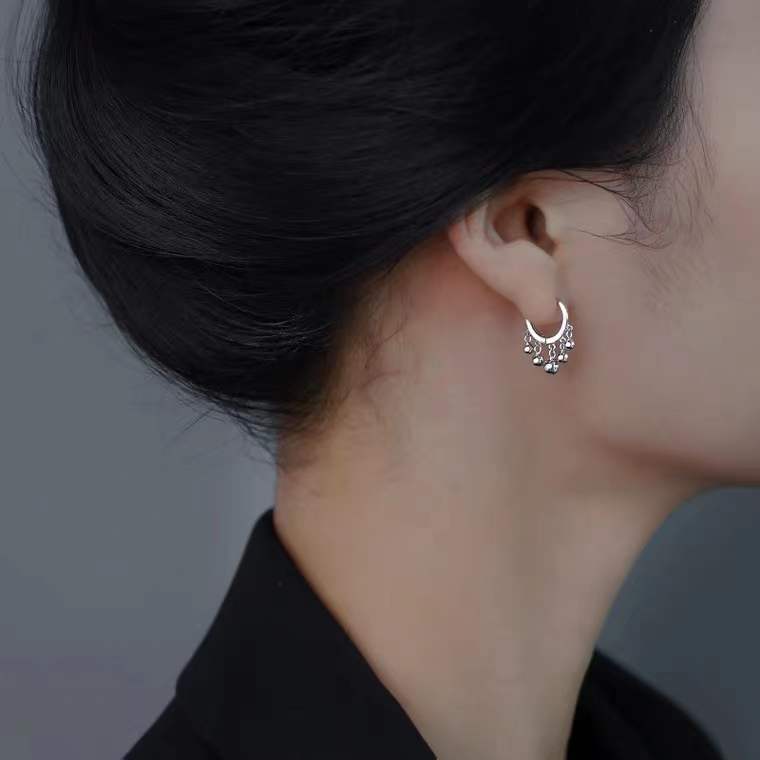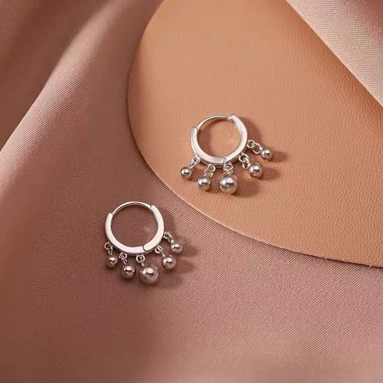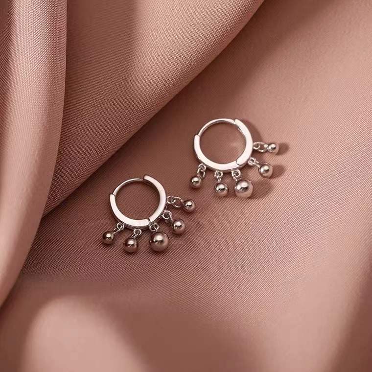 Aros de Plata 925 con Esferas Colgantes – Estilo Moderno y Cierre Bisagra