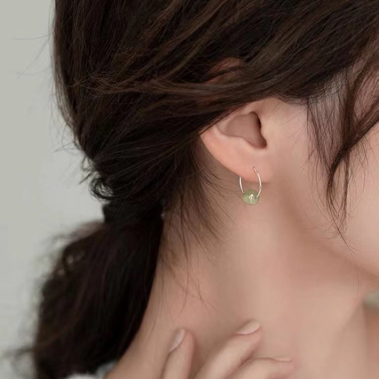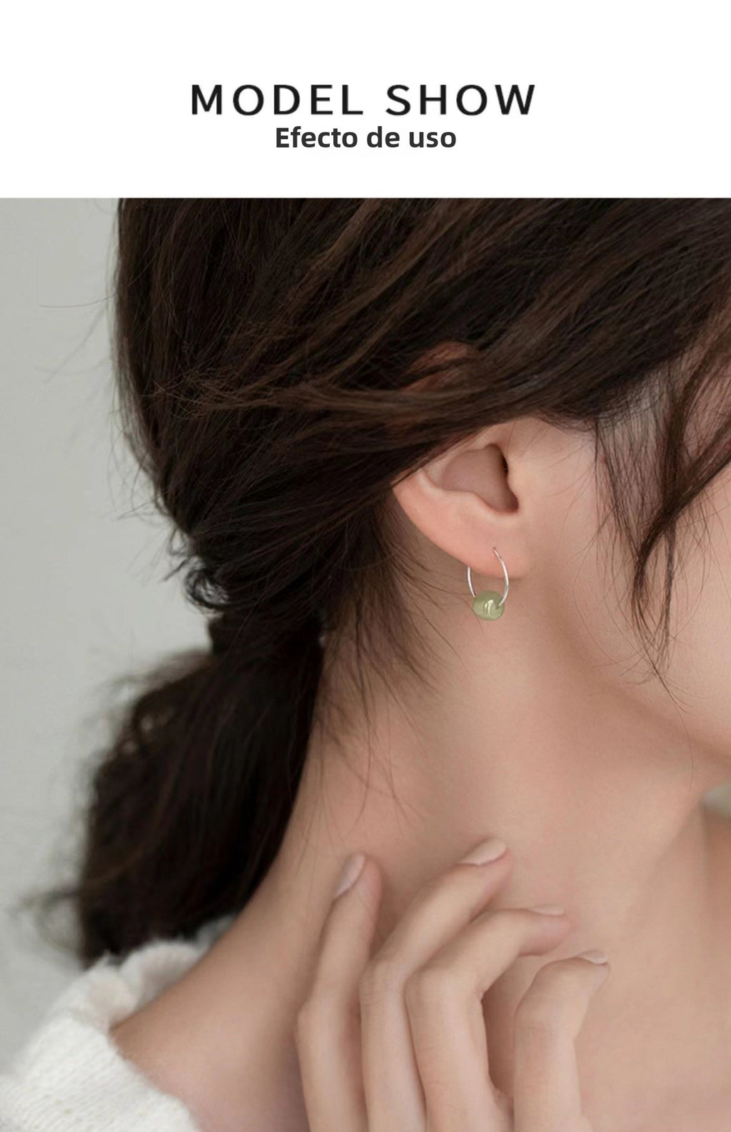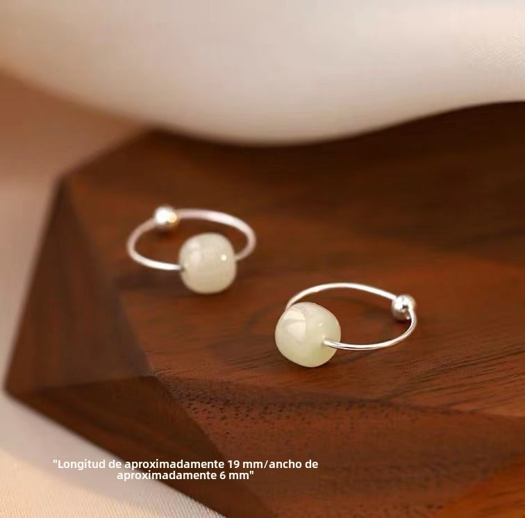 Aros de Plata 925 con Jade Hetian – Amuleto de Suerte