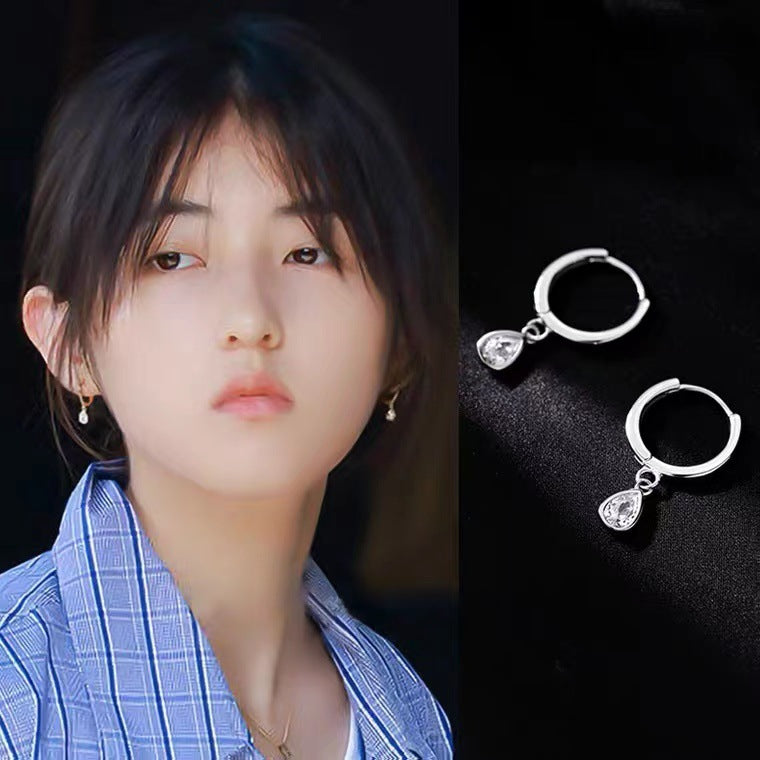 Aros Pequeños de Plata Pura – Dije de Gotas en Zirconia y Cierre Click