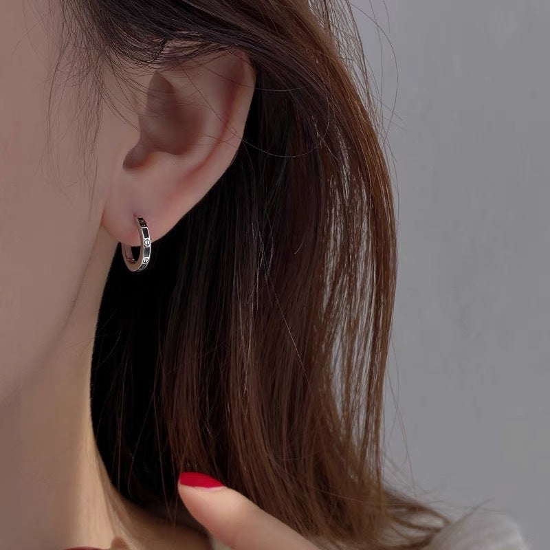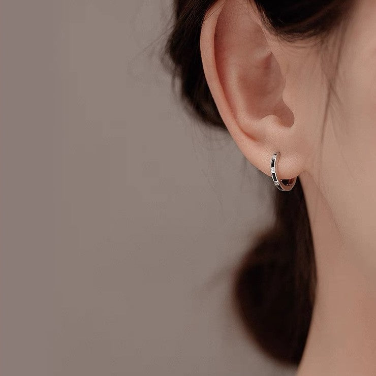 Aros Pequeños en Plata 999 – Diseño Geométrico y Contraste Negro