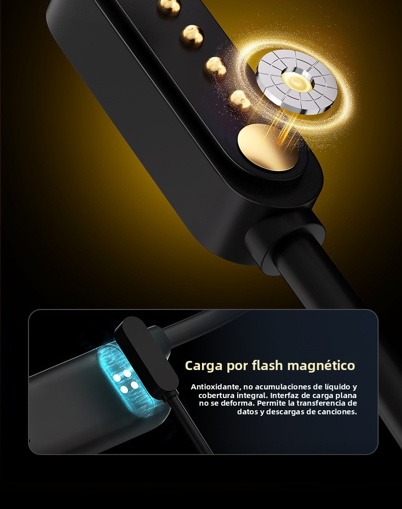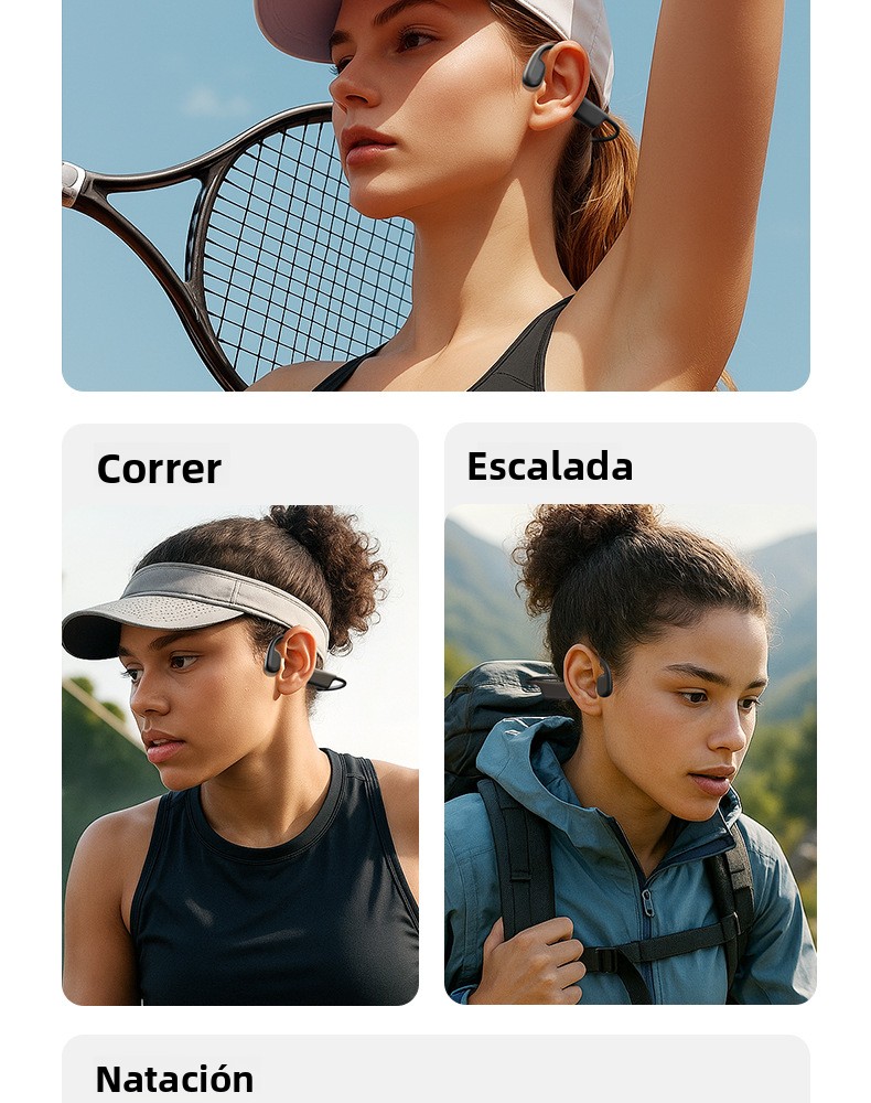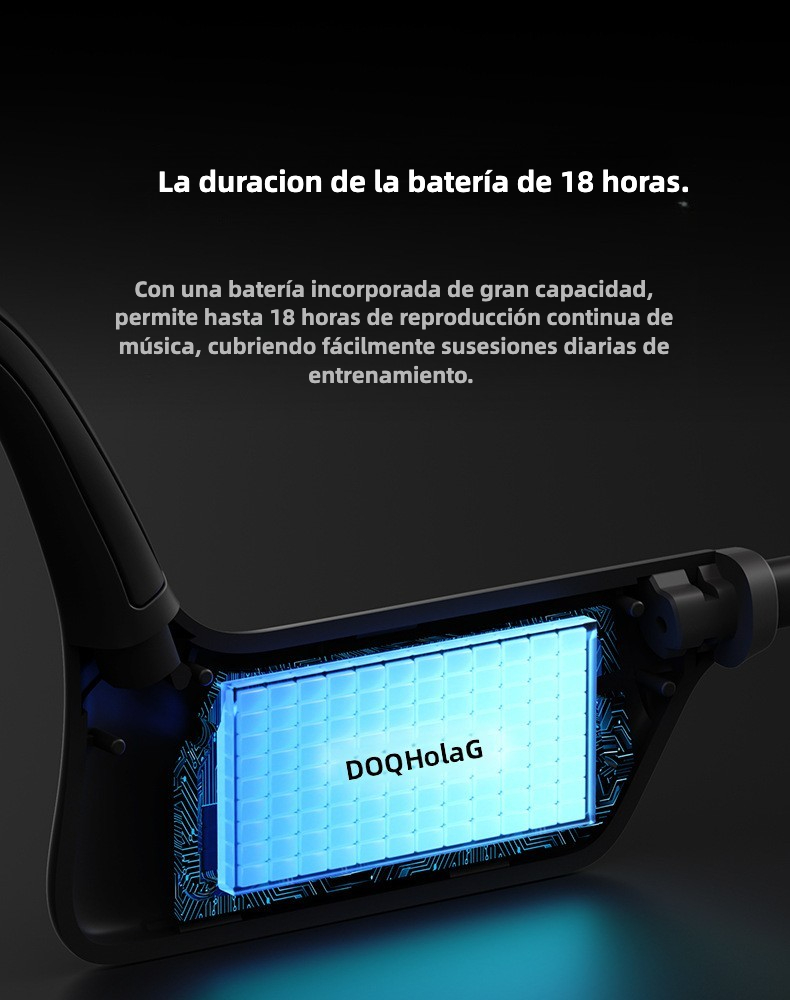 Los Audífonos de Conducción Ósea Impermeables ofrecen una experiencia de sonido cómoda y segura para deportes y natación. Su diseño permite escuchar música sin bloquear los oídos, favoreciendo la seguridad en entrenamientos al aire libre. Fabricados con materiales resistentes al agua, soportan inmersiones durante sesiones de natación y ejercicio intenso. Cuentan con memoria interna de 32 GB, que permite almacenar canciones y reproducirlas sin necesidad de conexión al teléfono. Su batería de larga duración garantiza horas de uso continuo. Características: