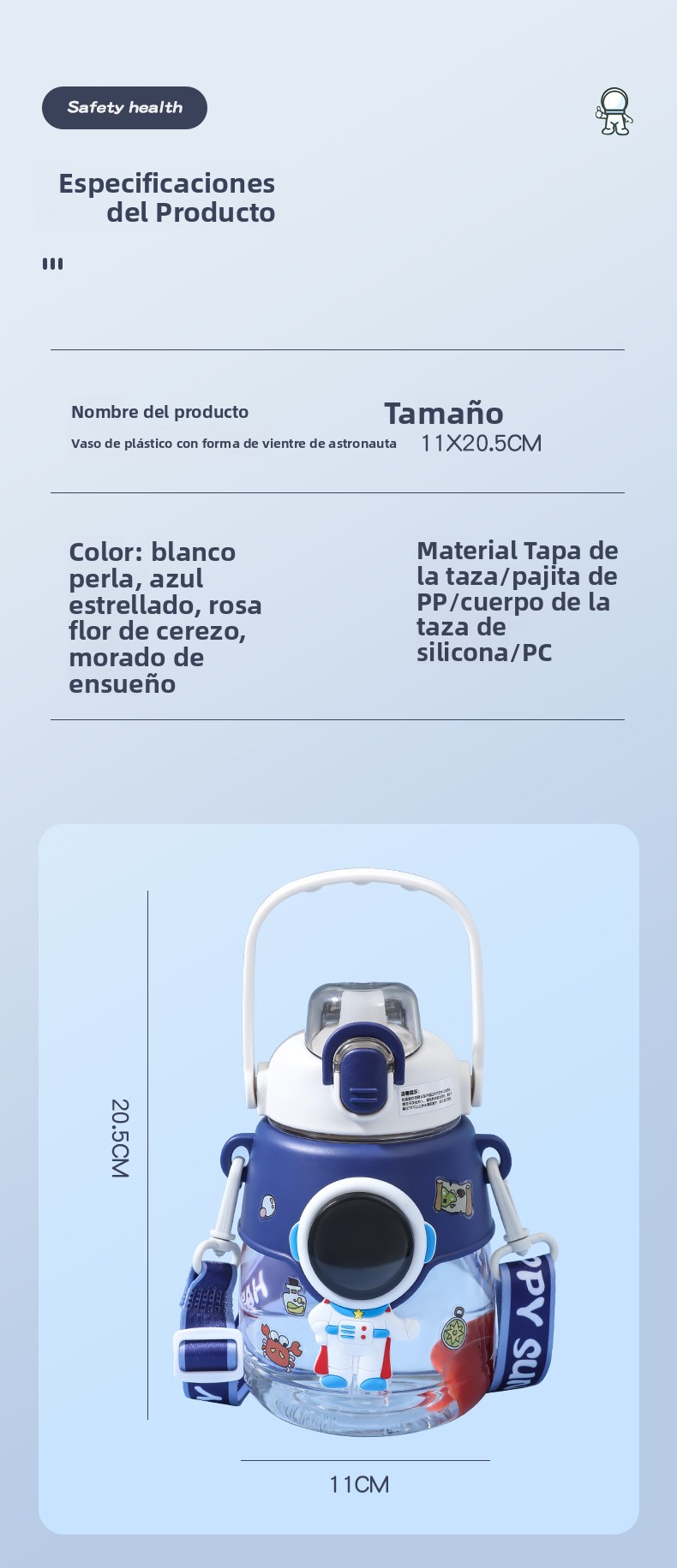 Botella de Astronauta para Niños: Vaso de Plástico con Pajita de Gran Capacidad