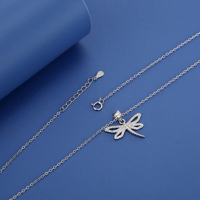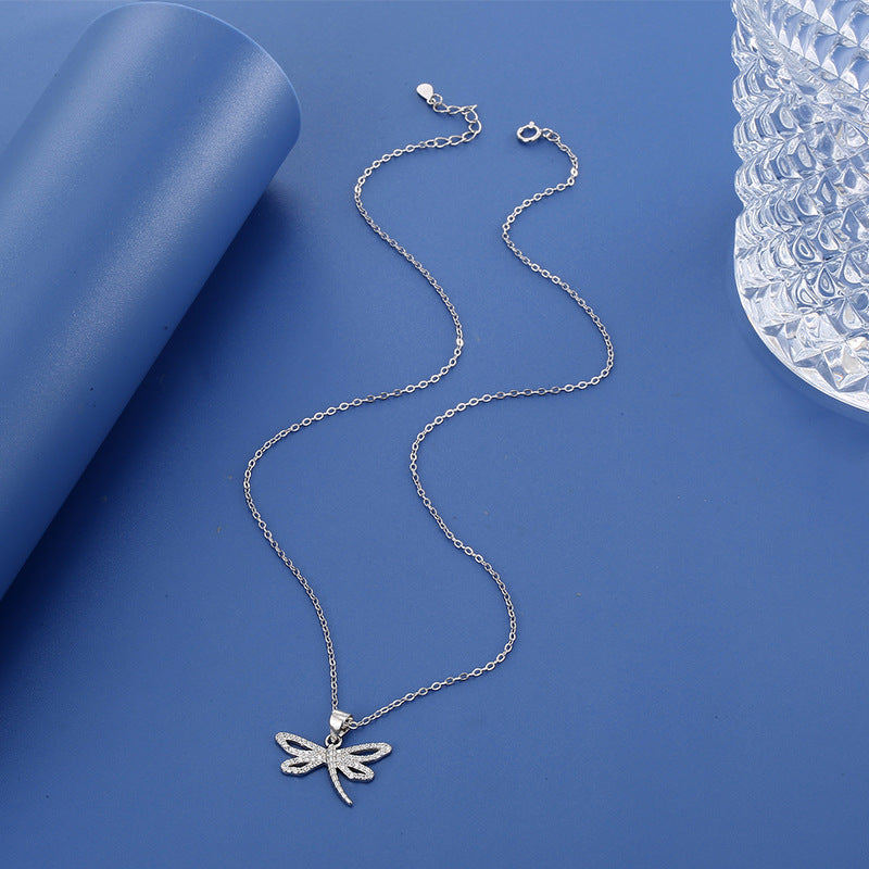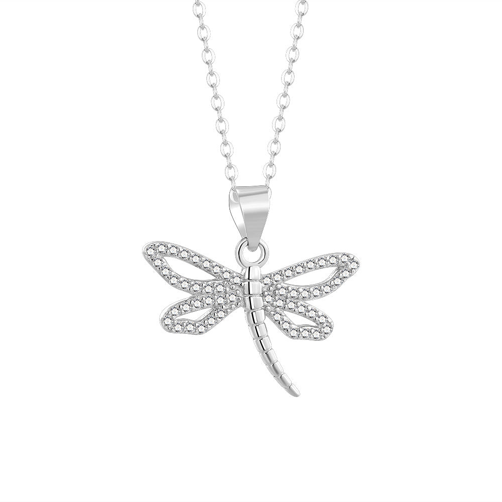 Cadena de Plata Corta con Dije de Libélula y Cristales Brillantes