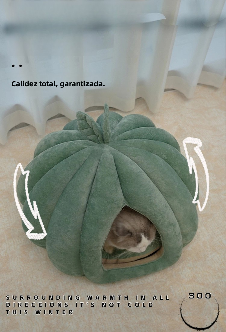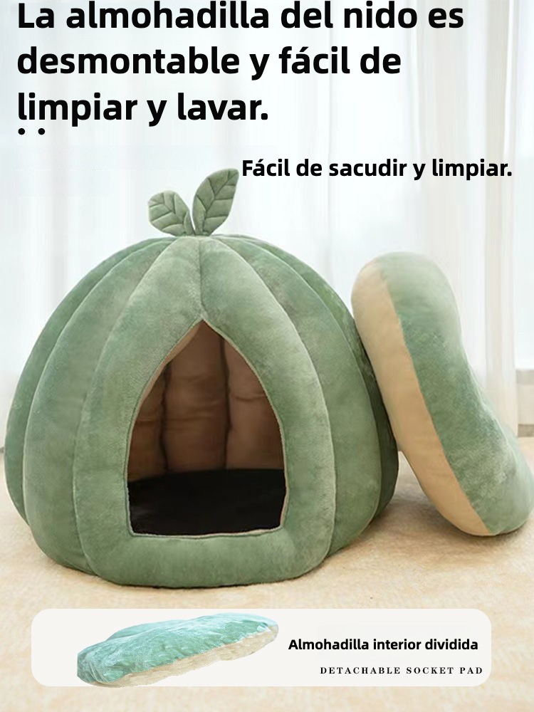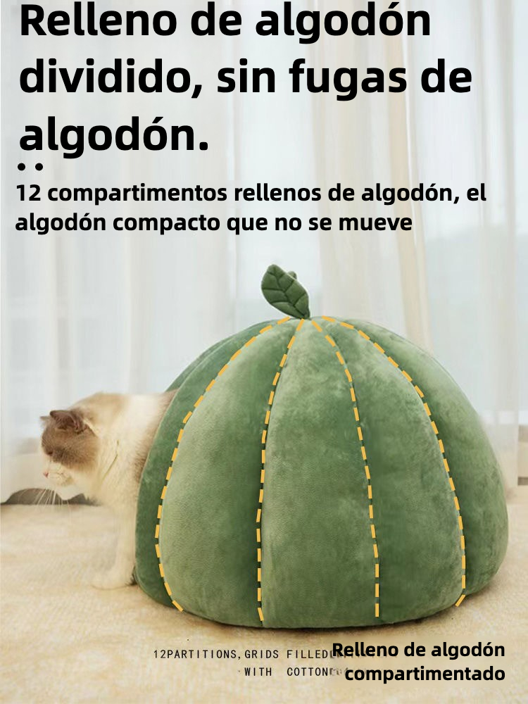 Cama para Gatos y Perros con Forma de Calabaza | Acolchada y Lavable