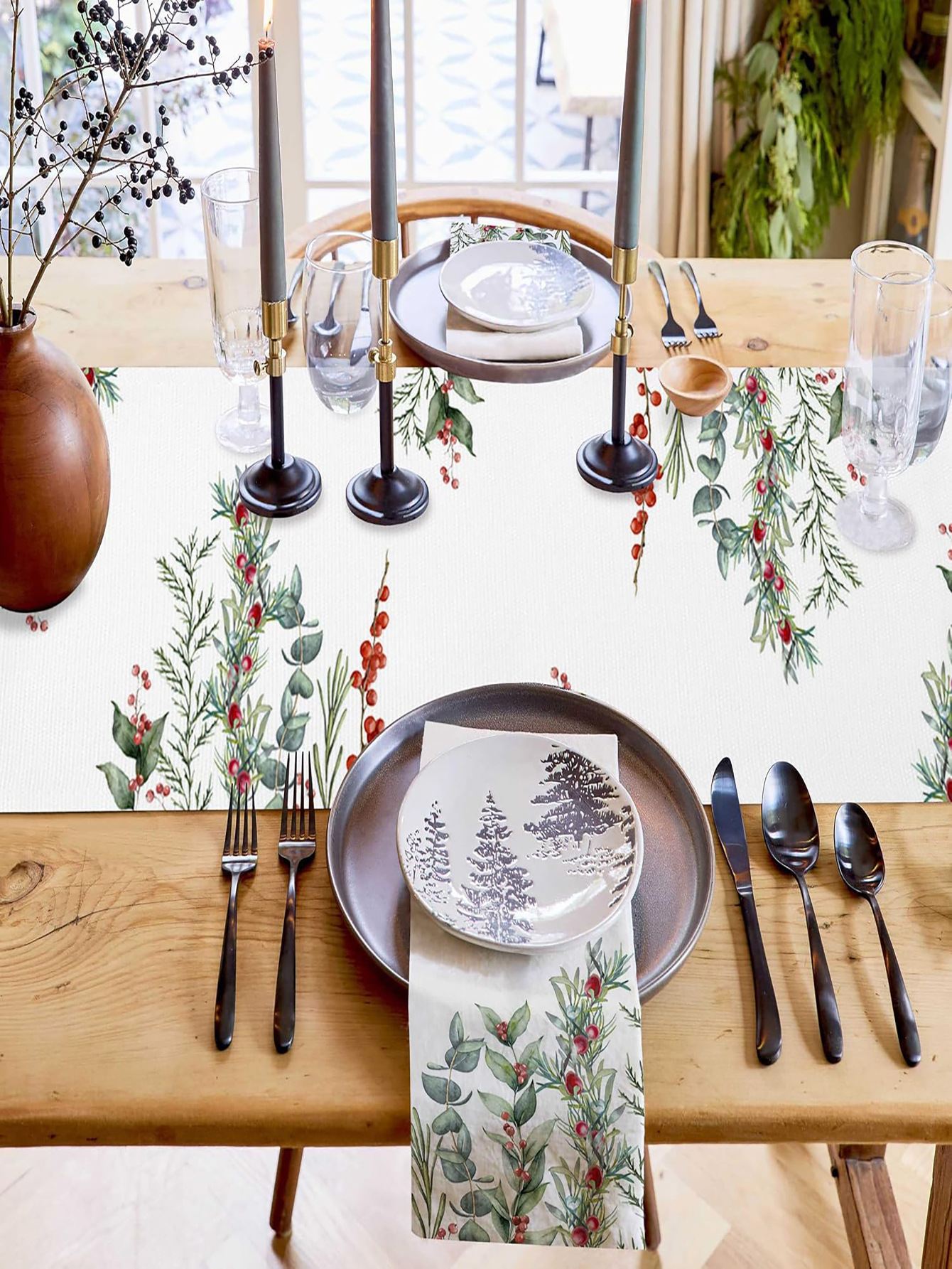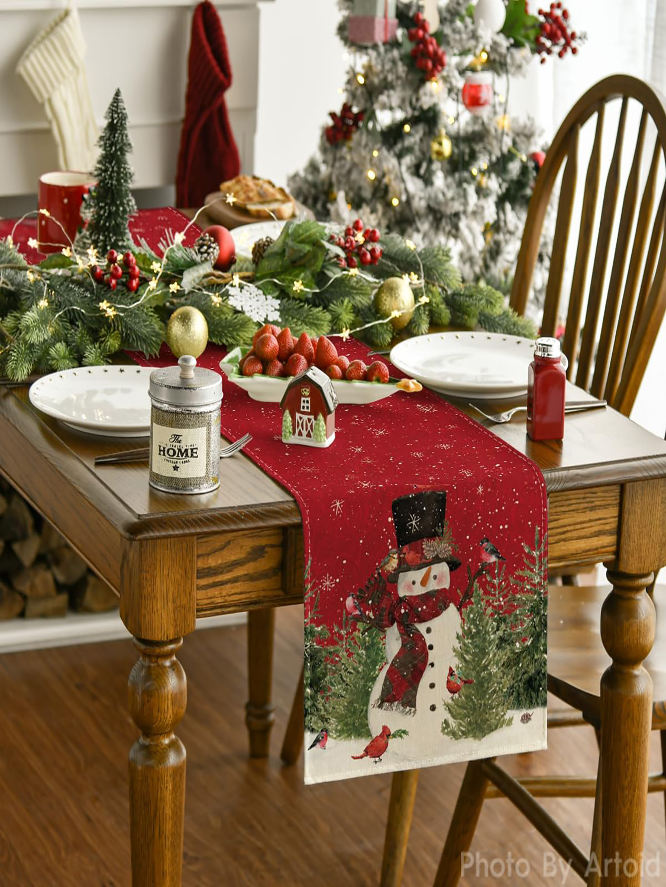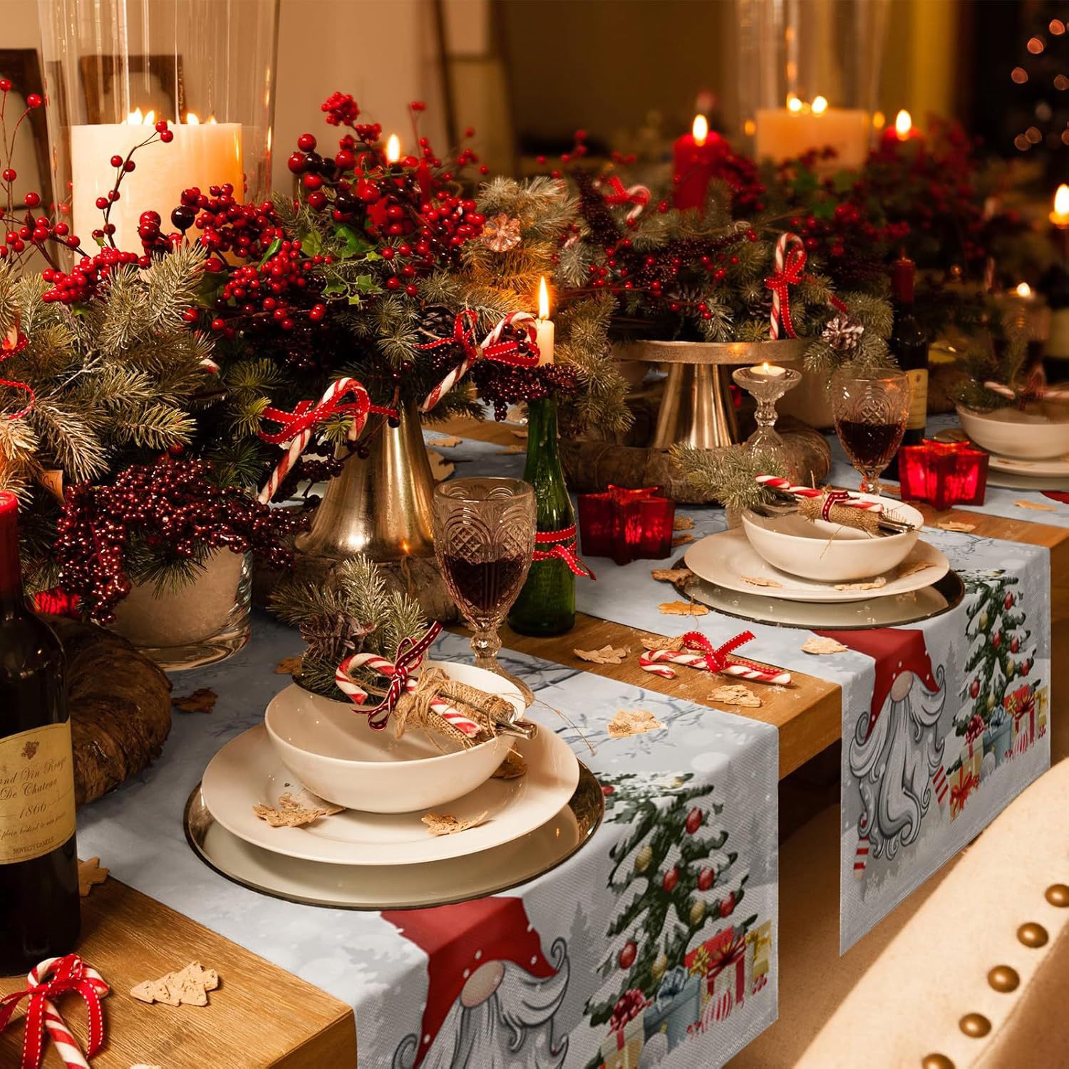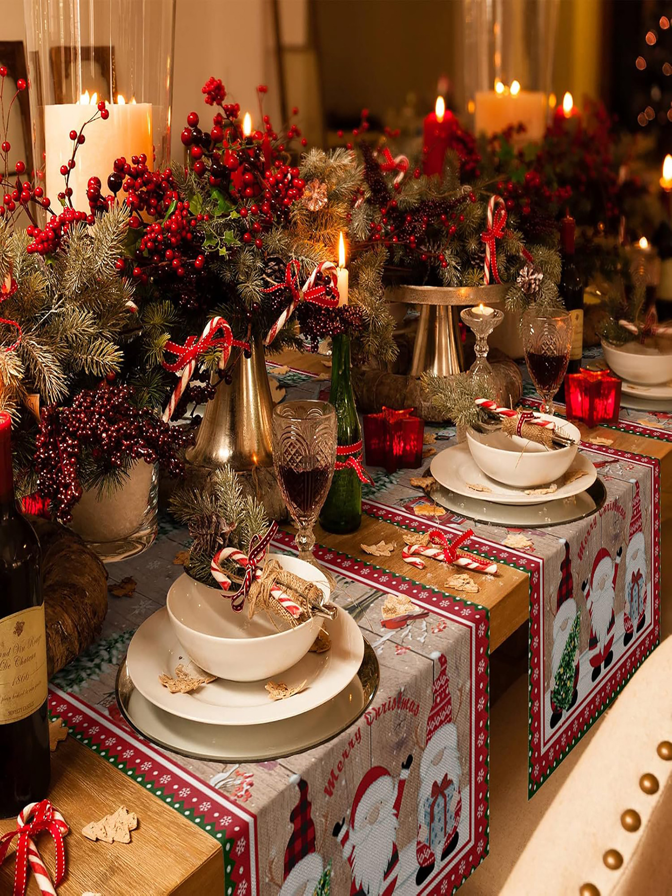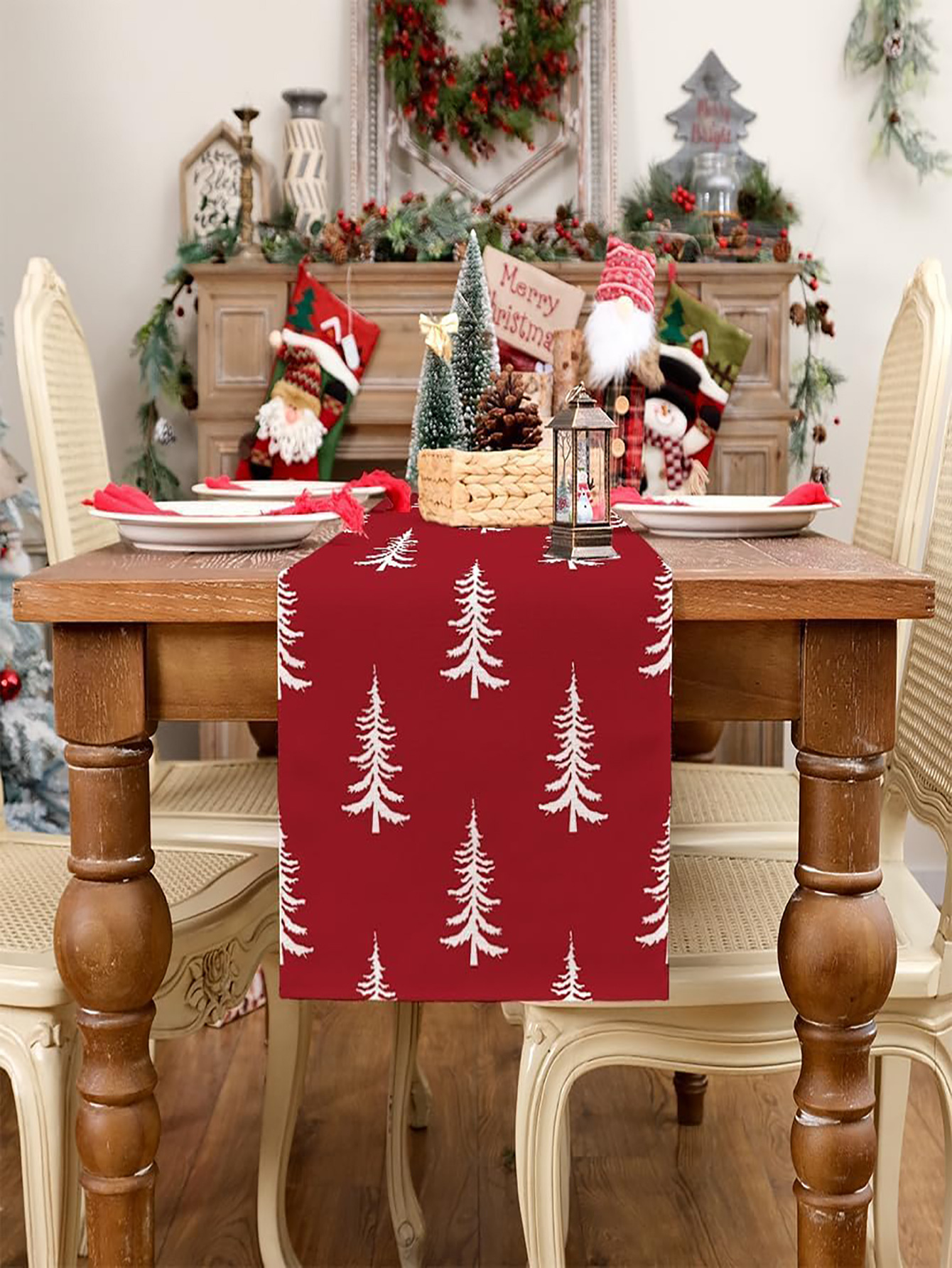 Camino de Mesa Navideño de Lino | Estampado en Varios Diseños y Tamaños