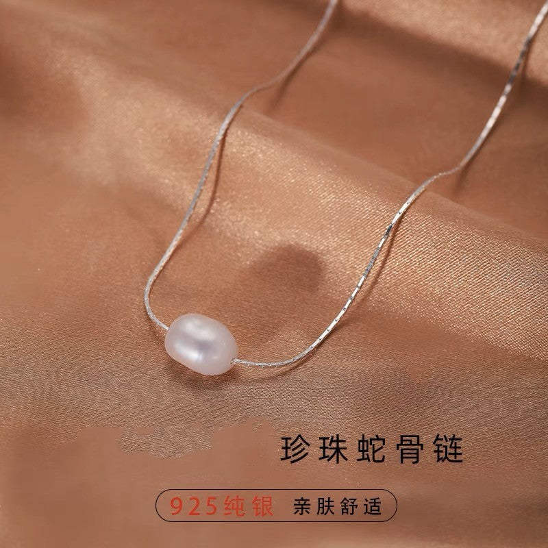 Collar para Clavícula de Plata 925 con Perla y Cadena Serpiente