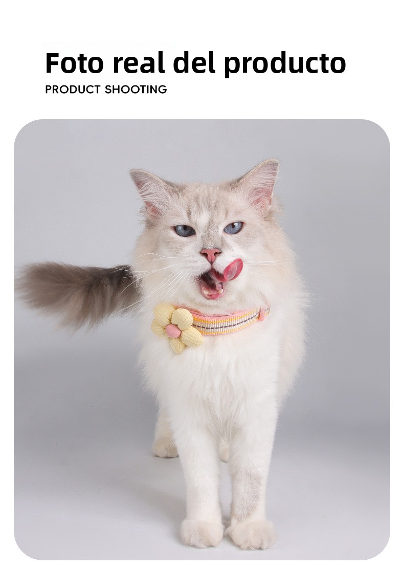 Collar para Gato con Flor Decorativa – Cinta Reflectante y Placa Personalizable