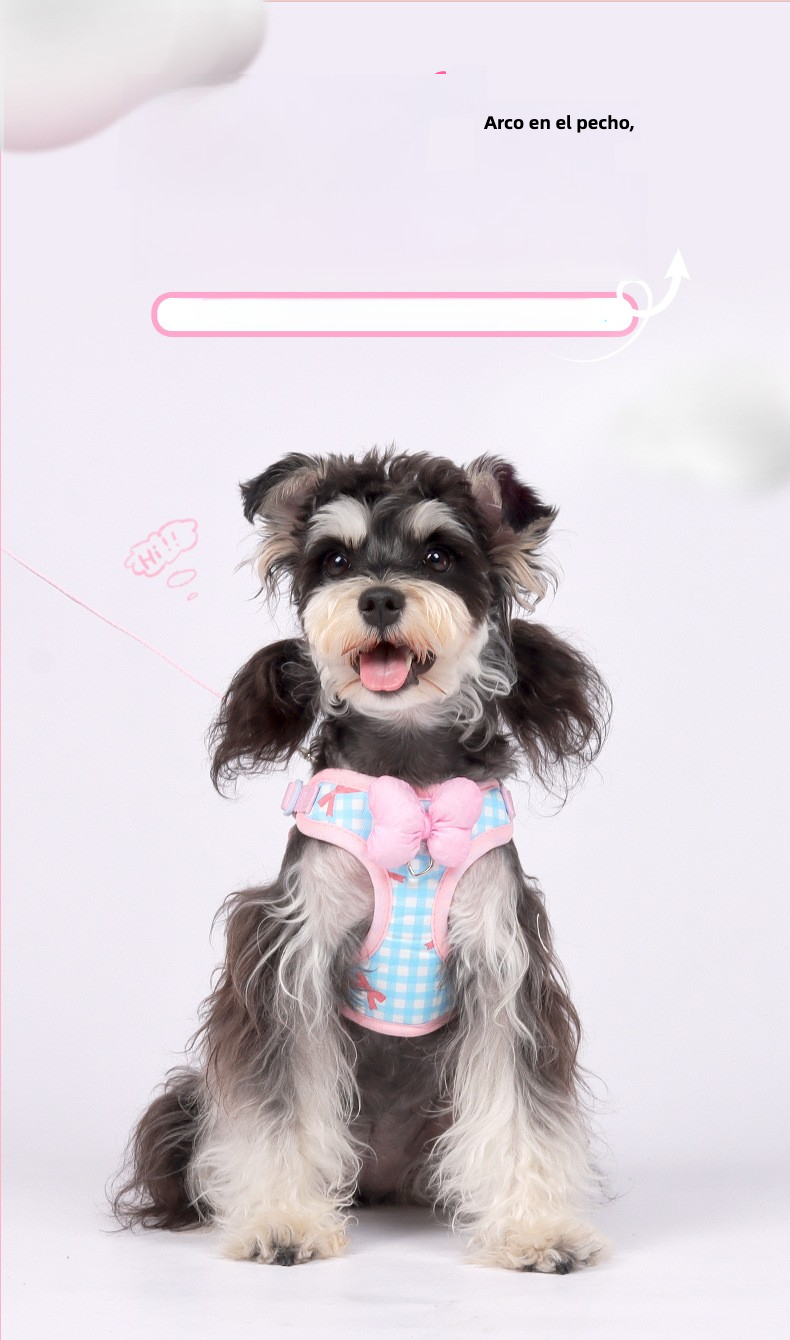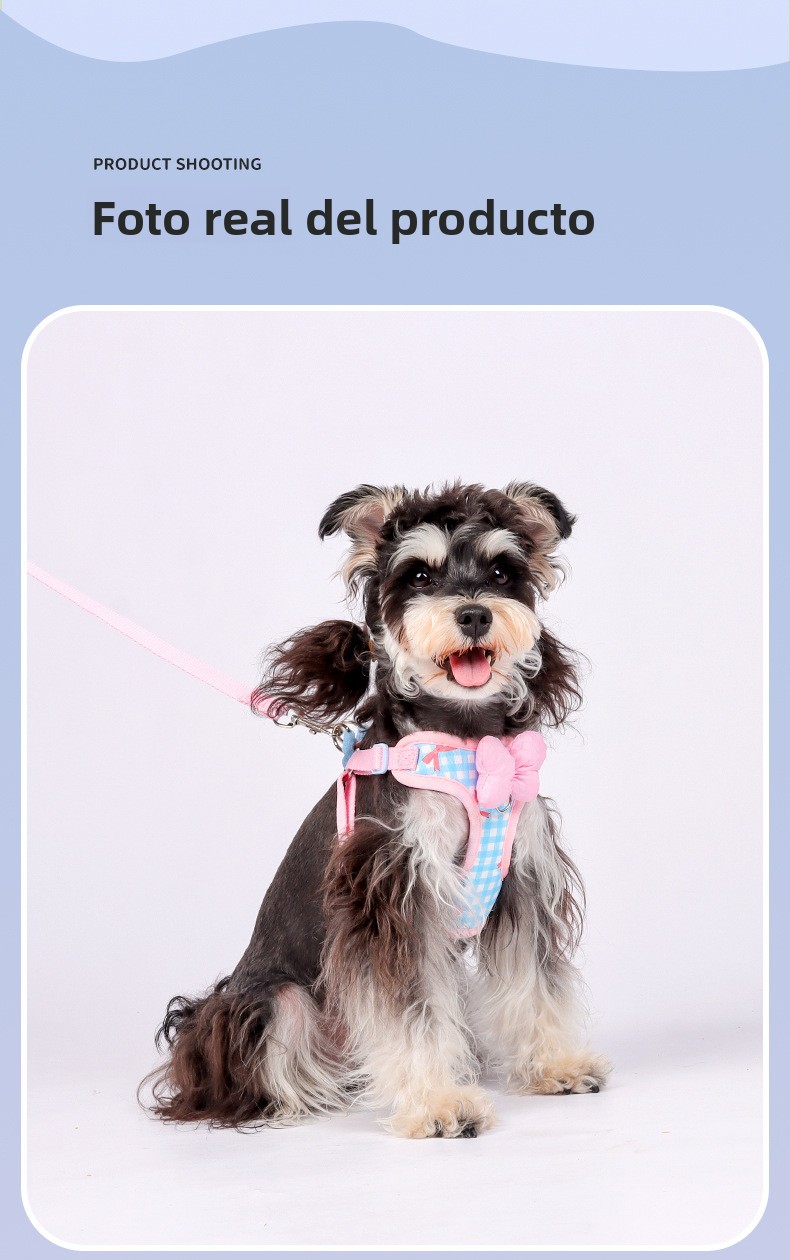 Correa con Arnés para Perros Pequeños | Diseño a Cuadros con Corbatín Decorativo