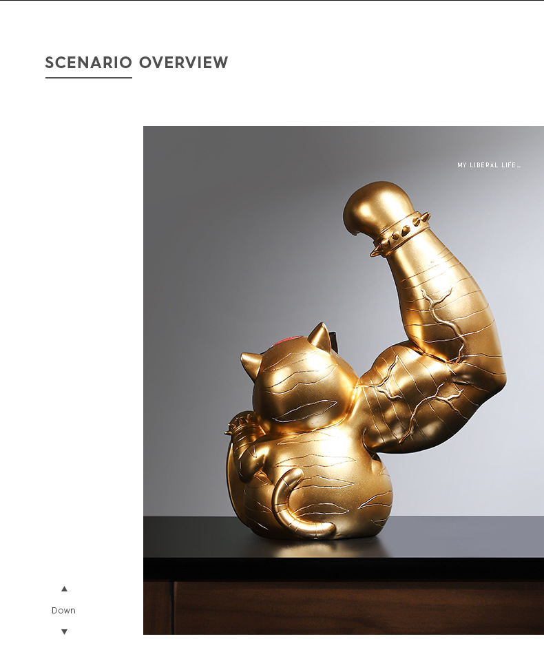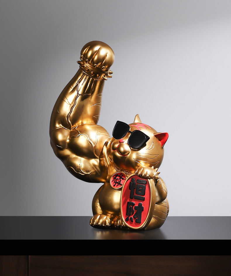 Gato de la fortuna musculoso de resina : Regalo fitness