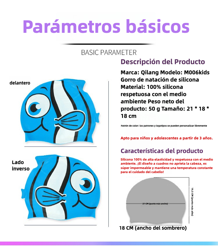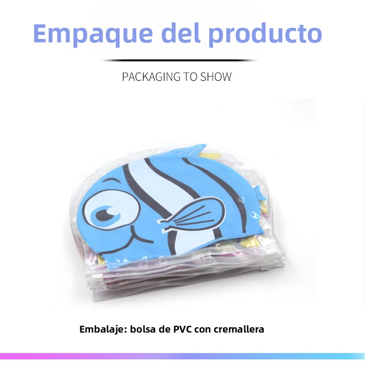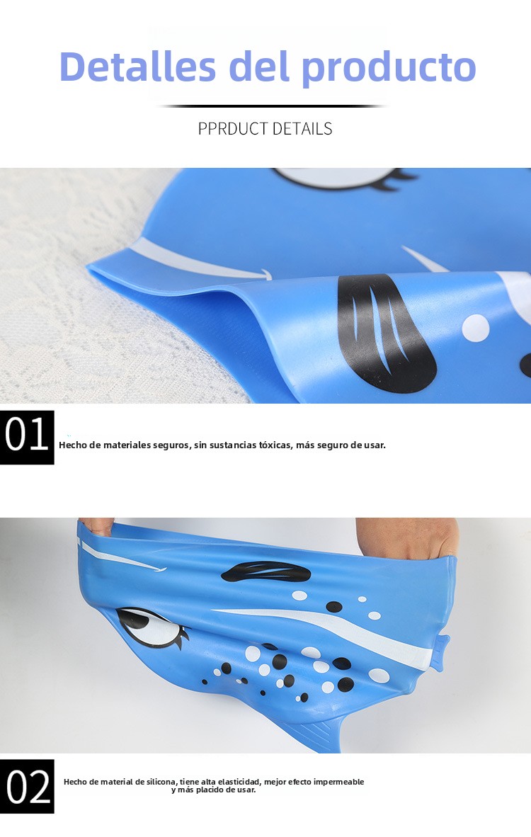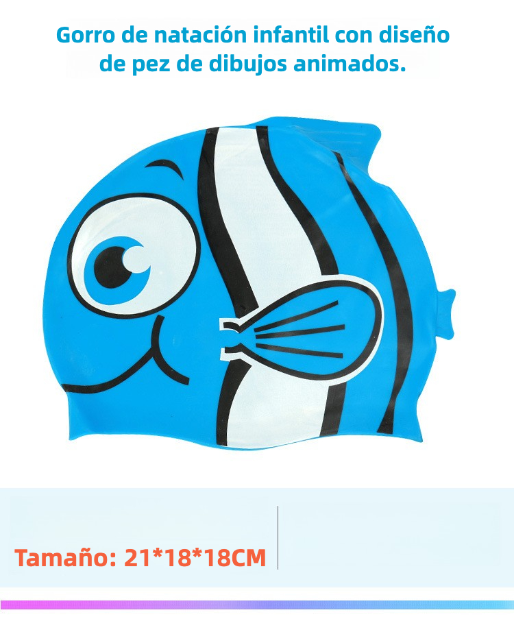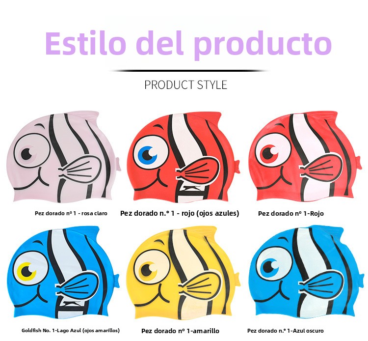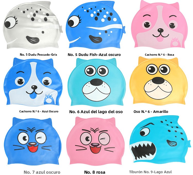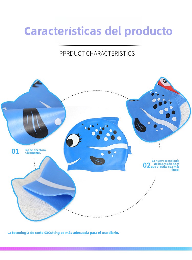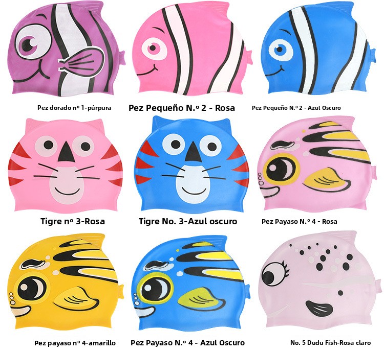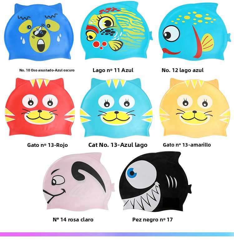 Gorro de silicona infantil multicolor: resistente al agua, con orejeras, diseño de animales y pez para natación y entrenamiento