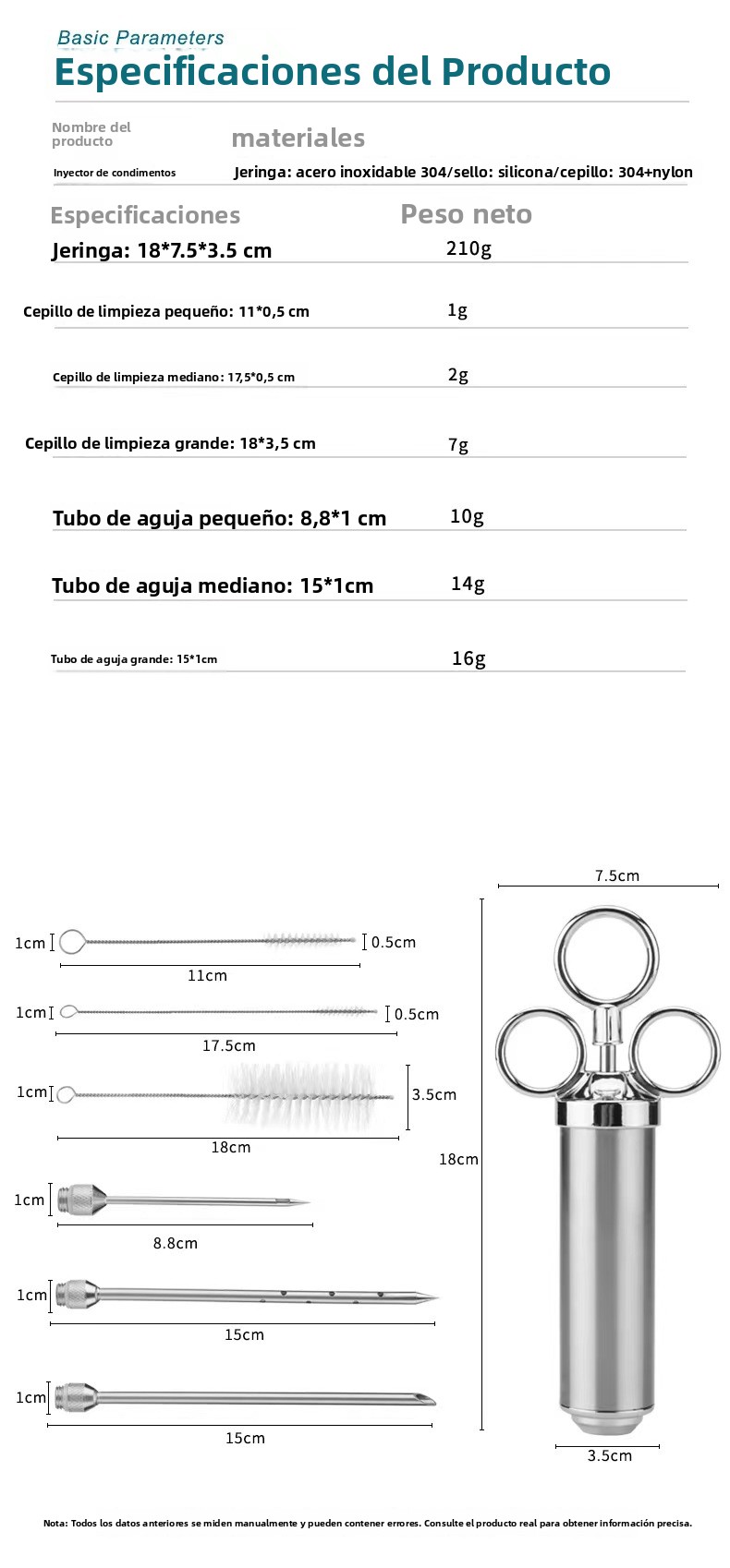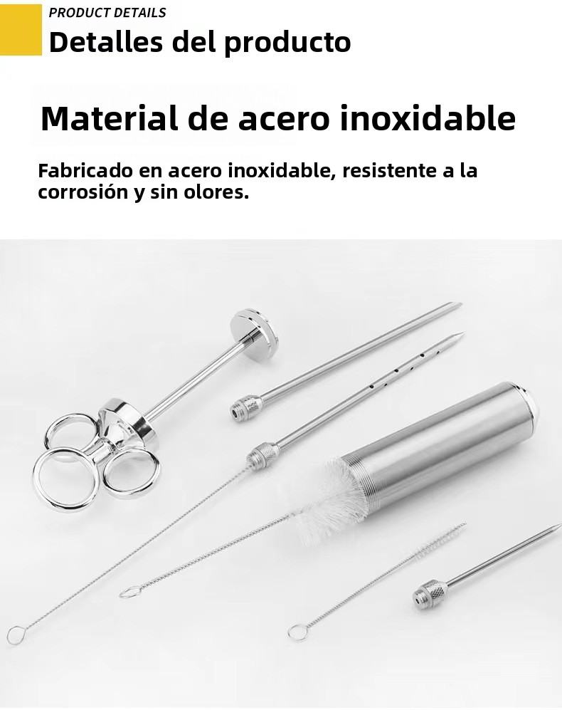 Jeringa para Sazonar de Acero Inoxidable – Kit de Inyección de Salsas y Condimentos