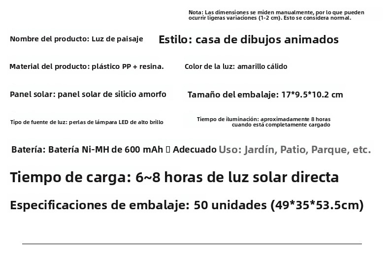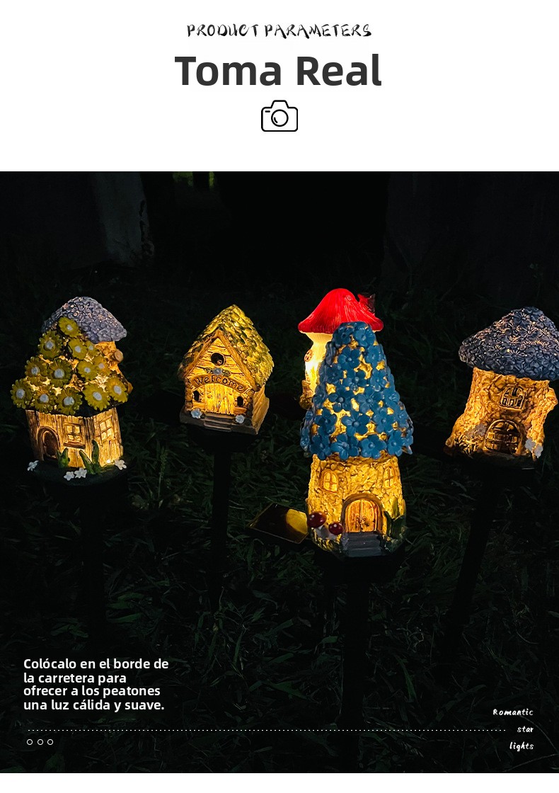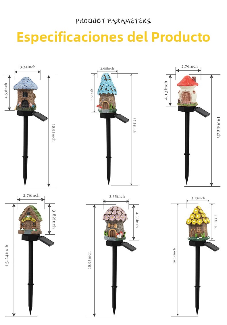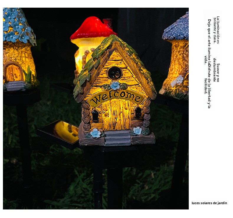 Lámpara Solar de Resina en Forma de Casita para Jardín con Estaca para Césped