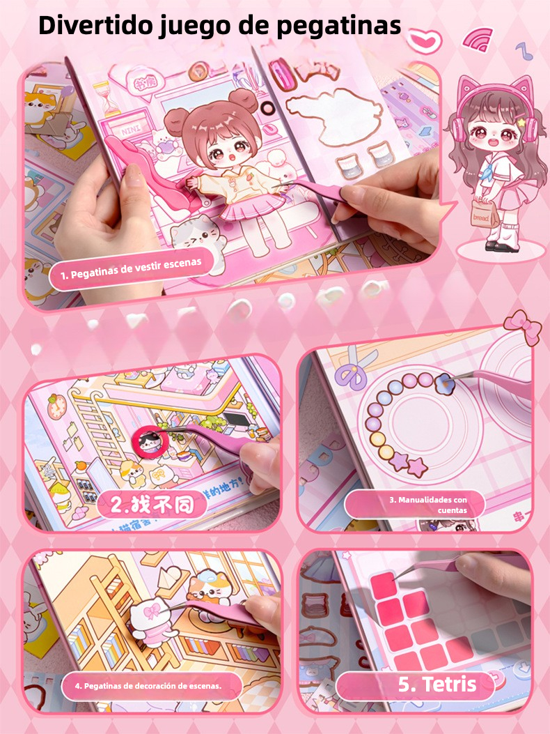 Libro de pegatinas para niñas con escenarios divertidos