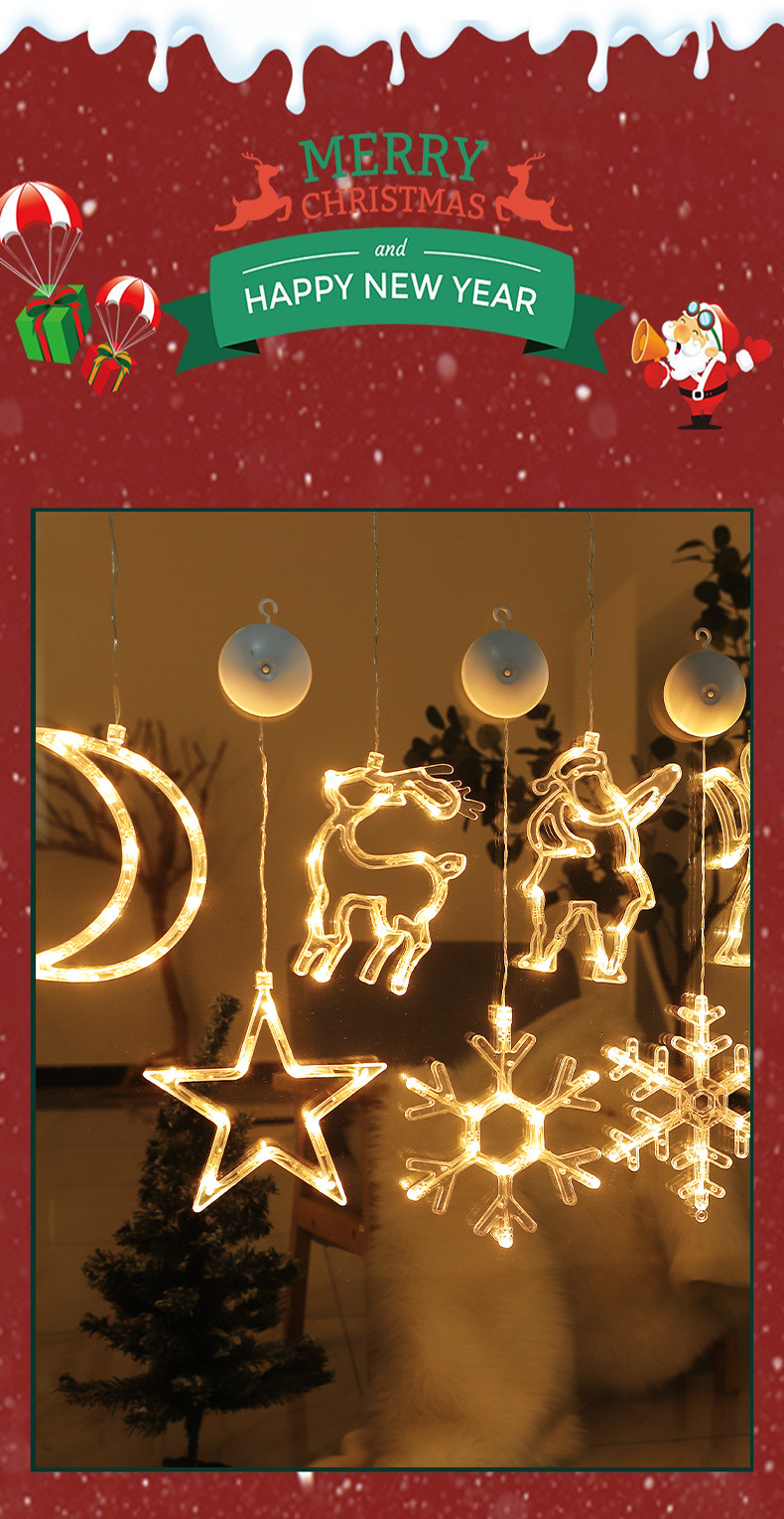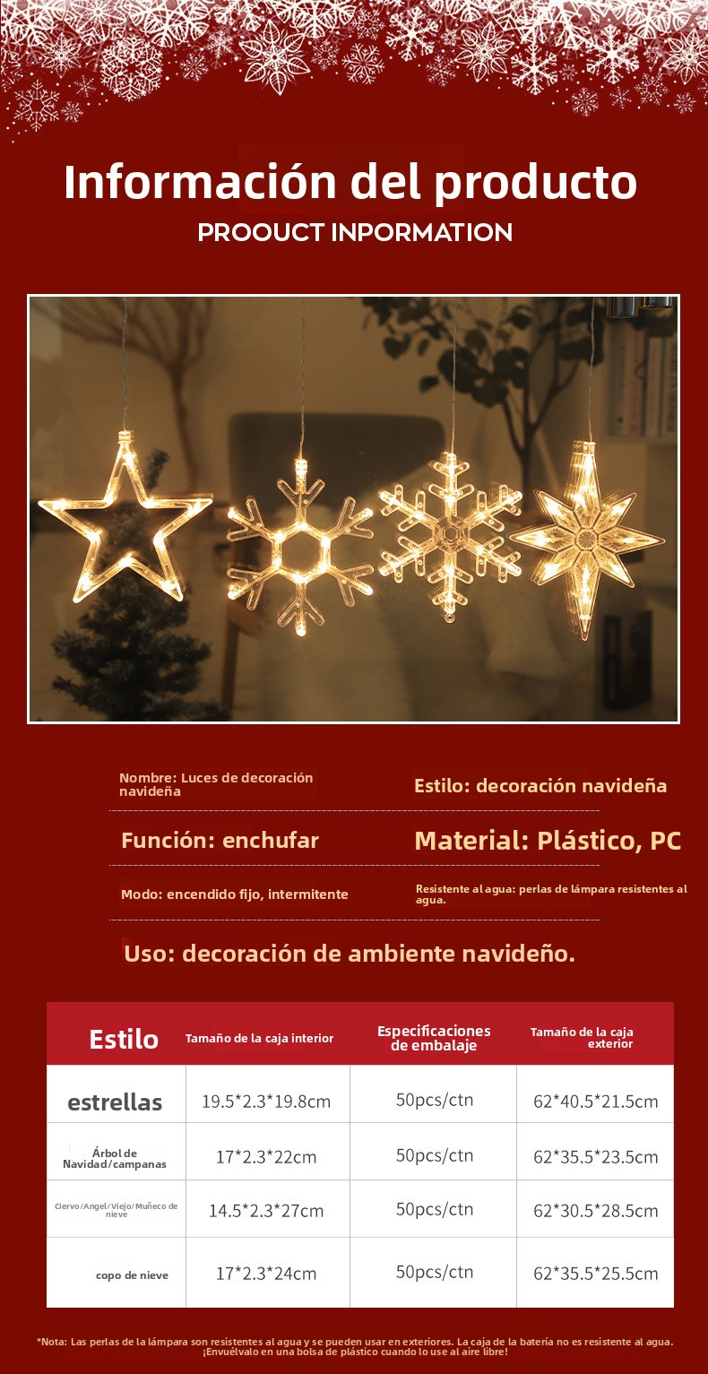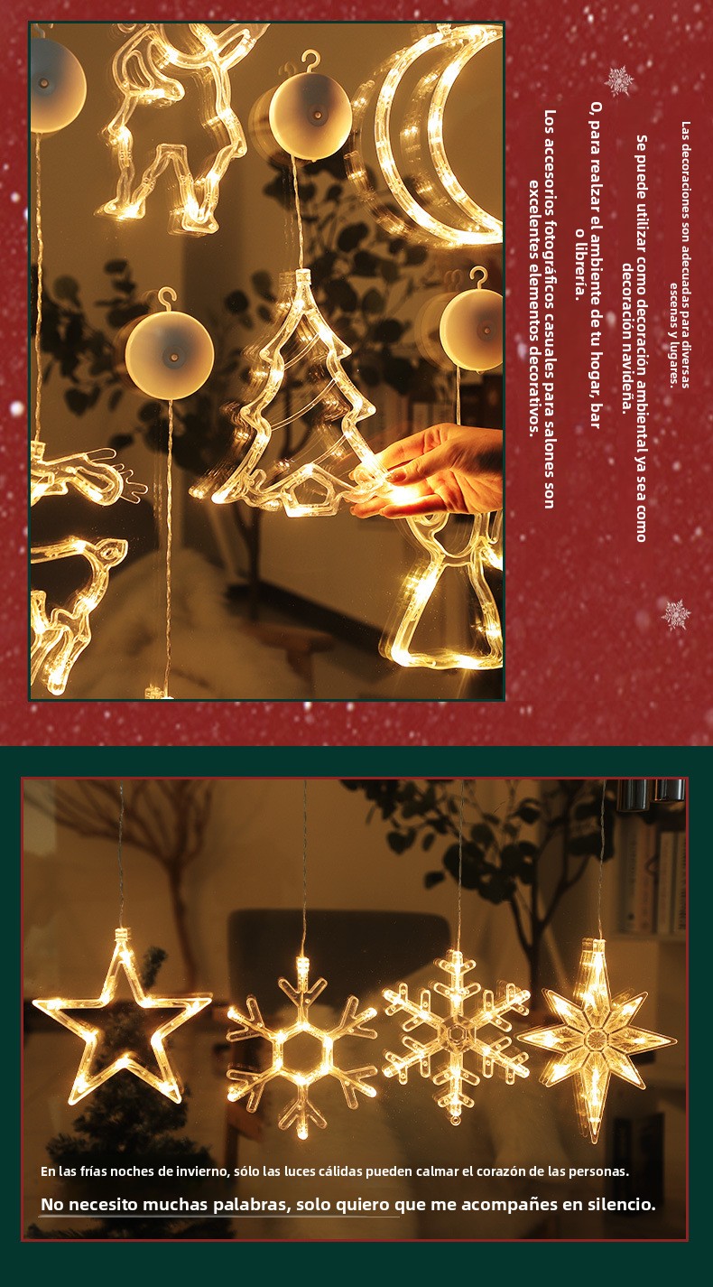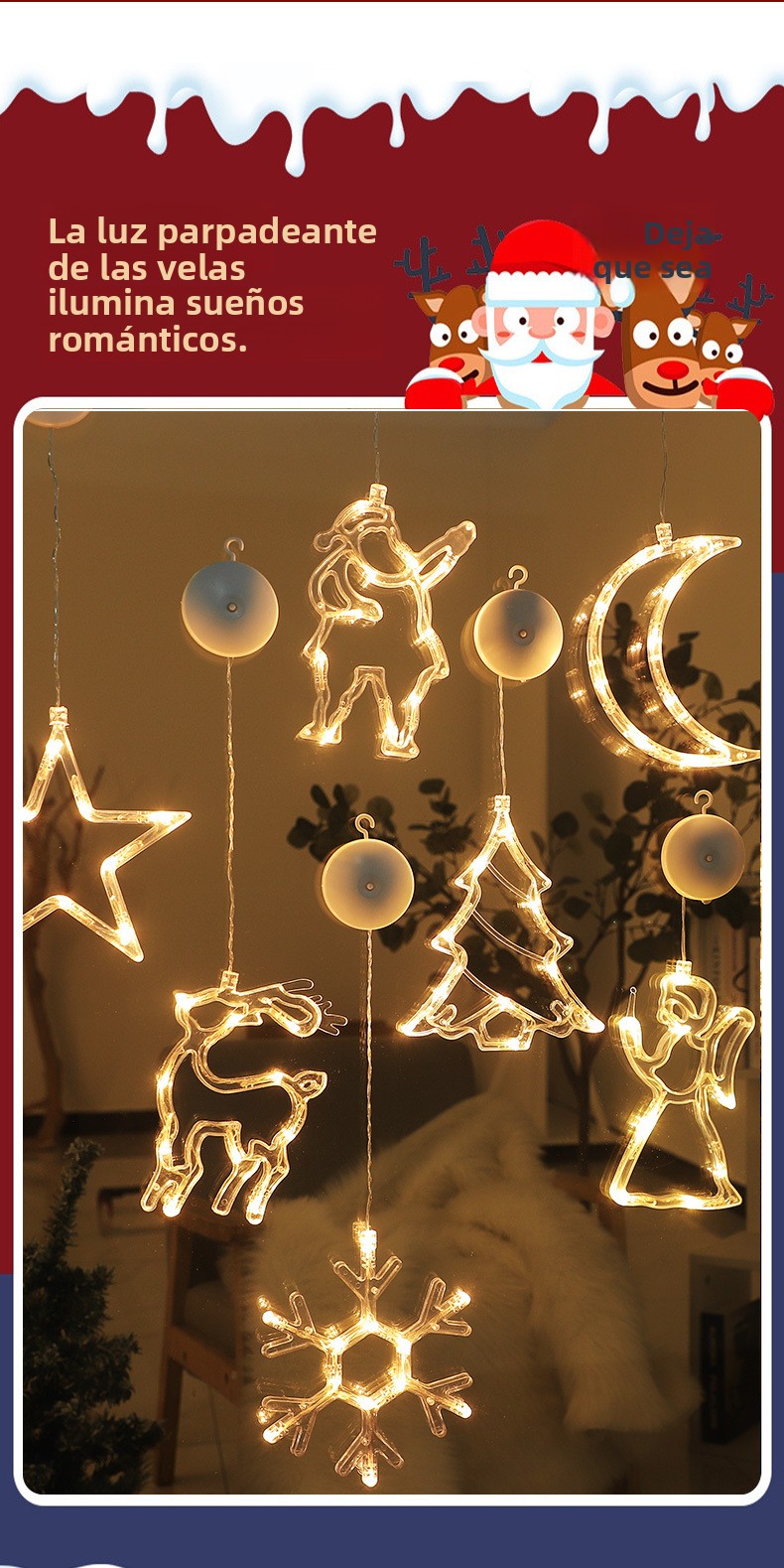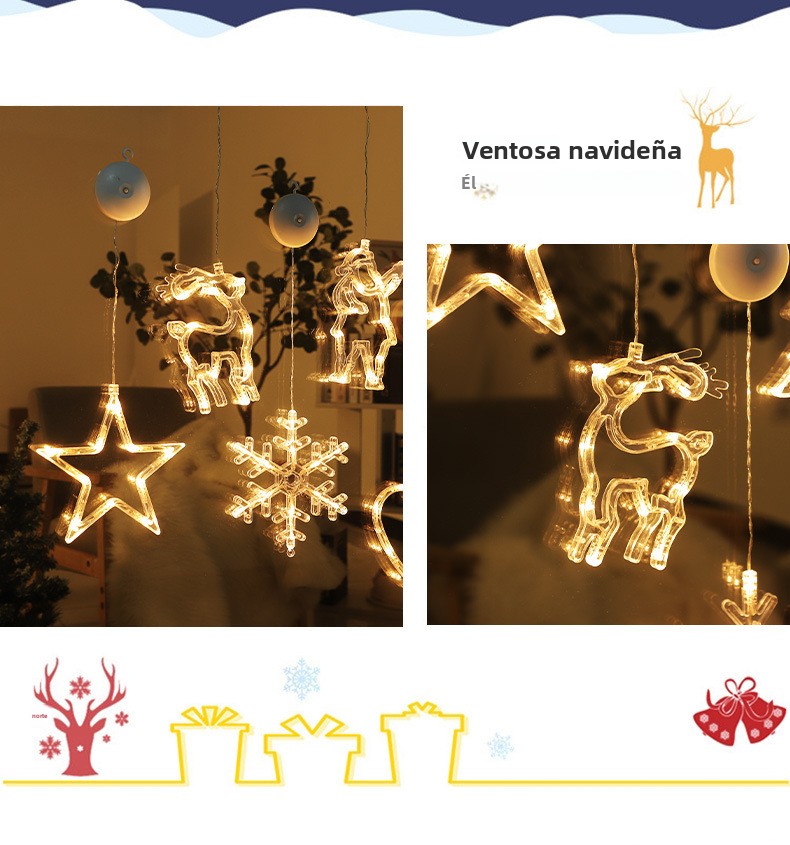Luces Navideñas con Ventosa para Ventanas: Diseños de Ciervo, Estrellas y Más Figuras