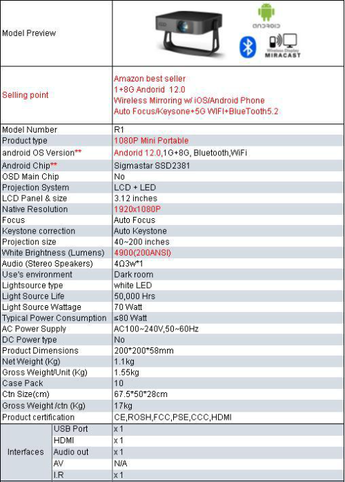 Categoría | Proyector Doméstico | Pantalla Compartida | Compatible con iOS y Android |
