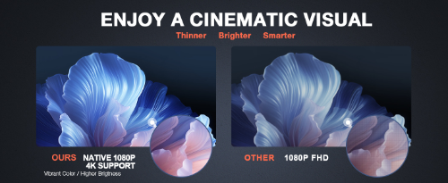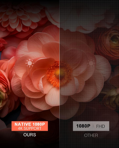 [Resolución FHD 1080P Nativa] Con su extraordinaria resolución nativa de 1080p y brillo de hasta 550 ANSI, este proyector de video 4K ofrece un festín visual. Cada fotograma es nítido, vibrante y preciso en color, creando una experiencia cinematográfica de alta definición sin precedentes como si estuviera frente a una pantalla gigante. Perfecto para noches de cine en el jardín, camping, juegos, fiestas al aire libre, partidos de fútbol y más.