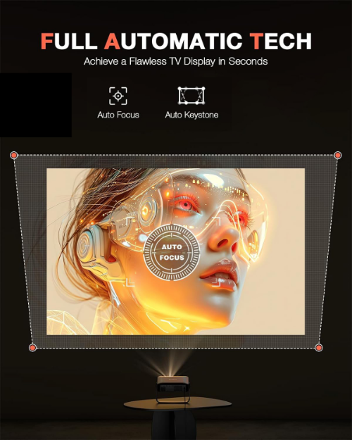 [Claridad Instantánea, Alineación Precisa] El proyector inteligente 4K combina enfoque automático rápido y corrección trapezoidal 6D integral, tardando solo 5 segundos desde el encendido hasta el disfrute. Elimina los ajustes manuales tediosos y está listo al instante para películas inmersivas o juegos intensos. El giroscopio de desplazamiento de alta sensibilidad integrado y los sensores inteligentes captan sutilmente los cambios ambientales, optimizando la imagen en tiempo real para una visión perfecta.