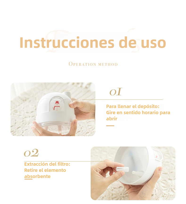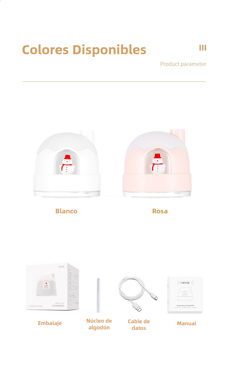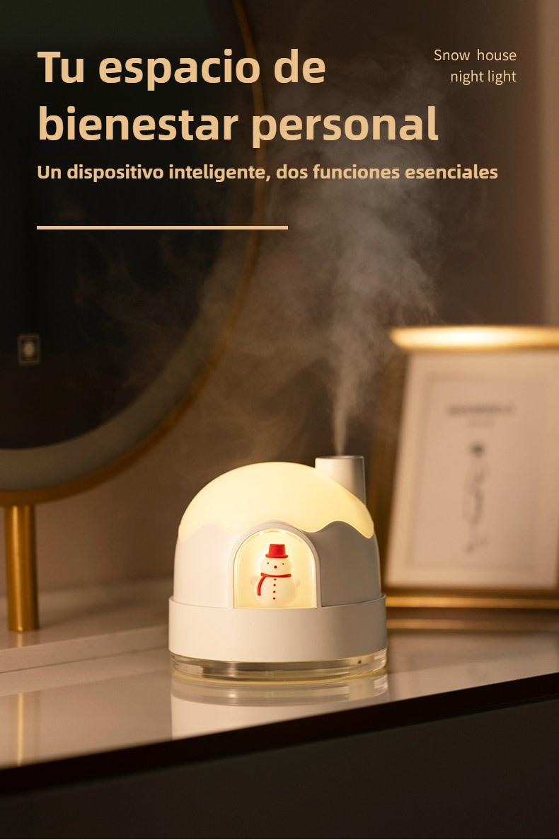 Novedoso Humidificador con Luz de Nieve y Noche: USB Silencioso Para Dormitorio, Mini Aire Acondicionado Para Hogar