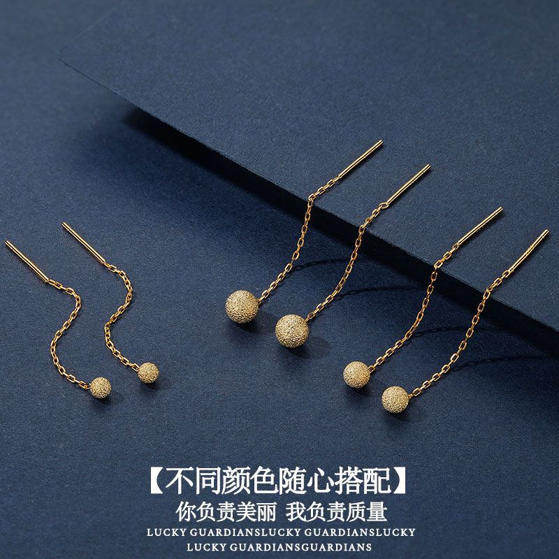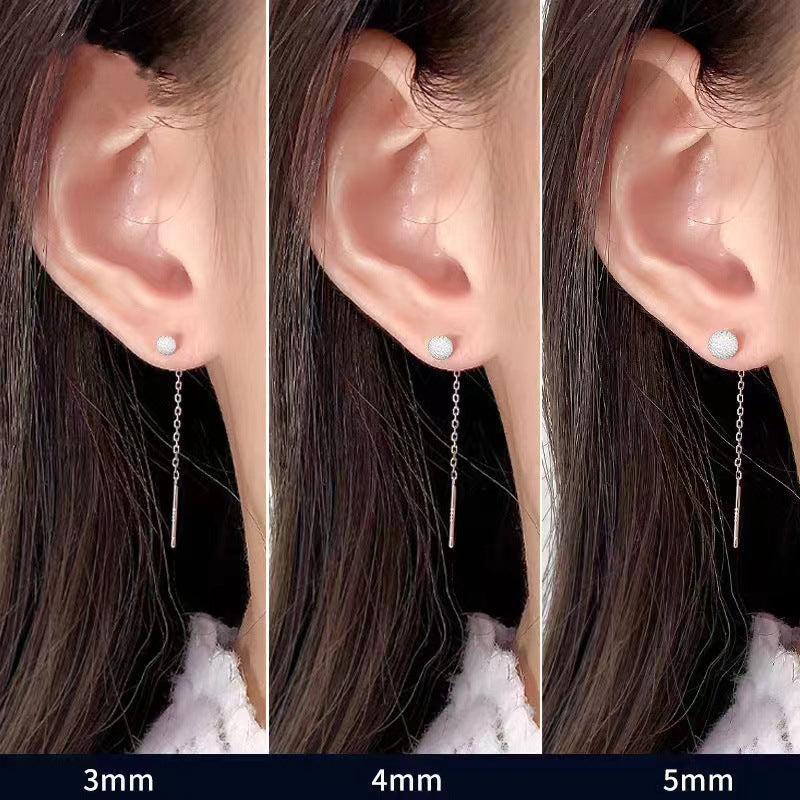 Aretes Tipo Enhebrador Esfera de Plata Pura – Cadena de Eslabones Rectangulares