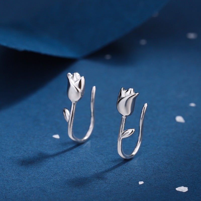 Pendientes Tipo Botón con Flores de Tulipán – Cierre de Gancho para Mujer