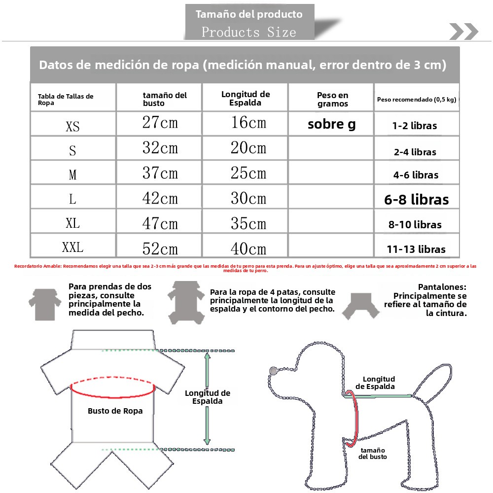 • XXL (longitud de la espalda 40 cm)