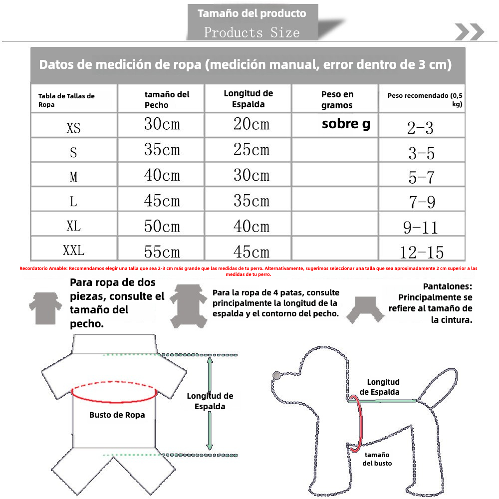 • XS (Longitud De Espalda 20CM)