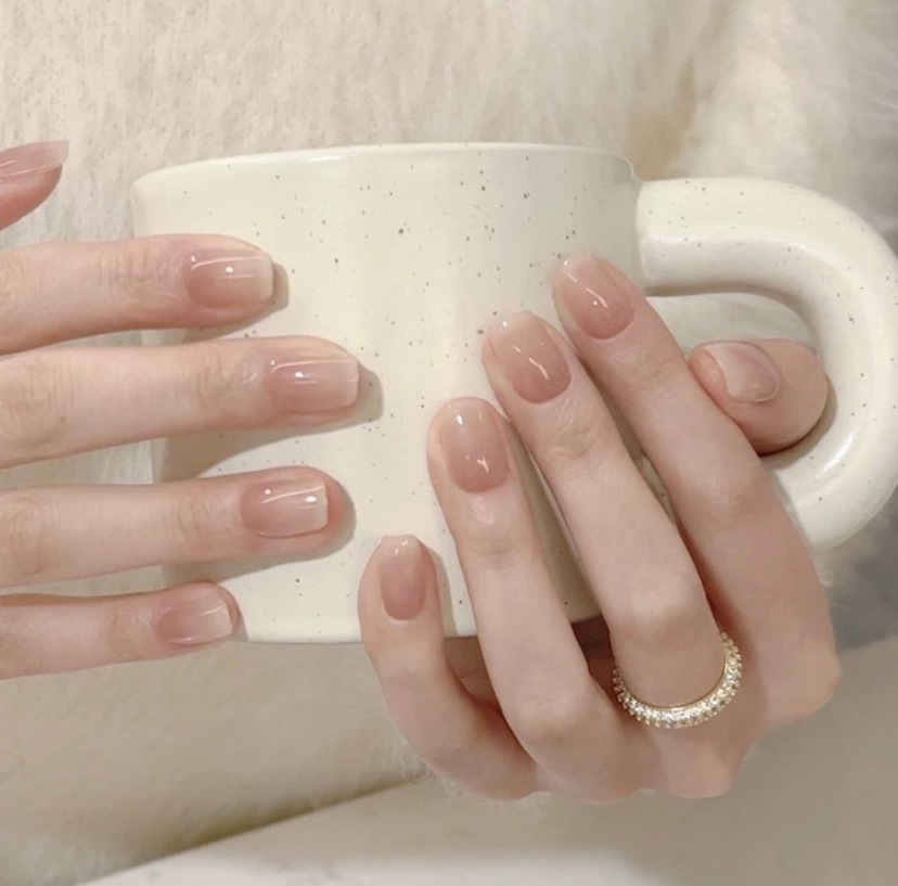 Uñas Postizas Tono Nude — Diseño Ovalado, Efecto Gel